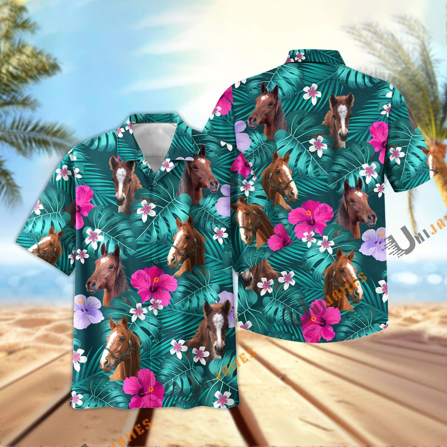 Uni Horse Green Flowers Summer Pattern Hawaiian Shirt