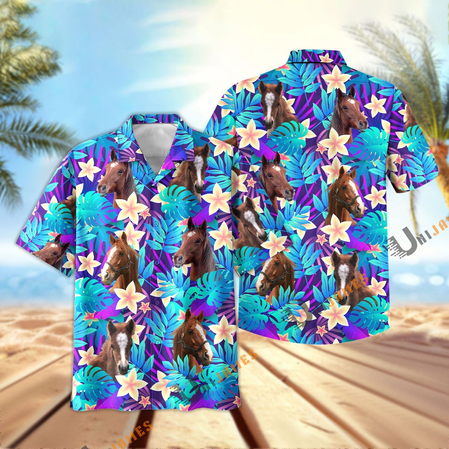 Uni Horse Light Blue Flowers 3D Hawaiian Shirt