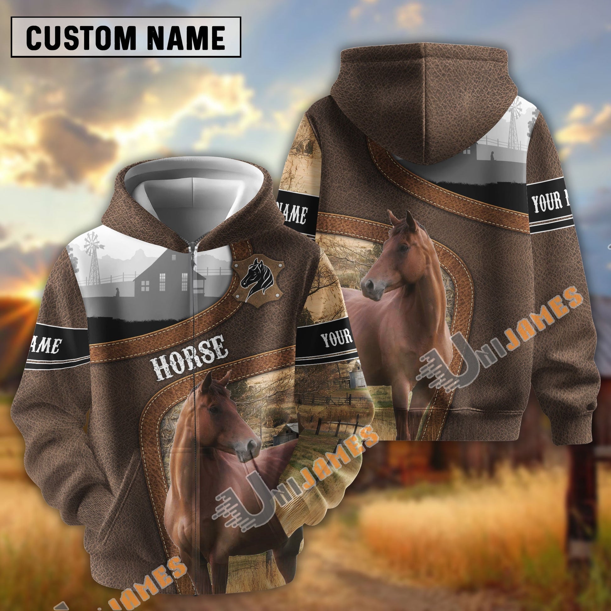 Uni Horse Light Leather Pattern Personalized Name and Farm Name Color Mixed 3D Hoodie