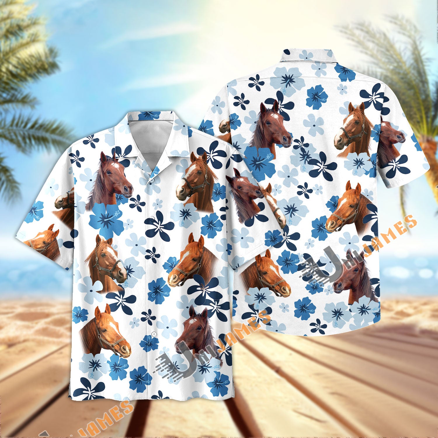 Uni Horse Retro Blue Aloha Floral Hawaiian Shirt