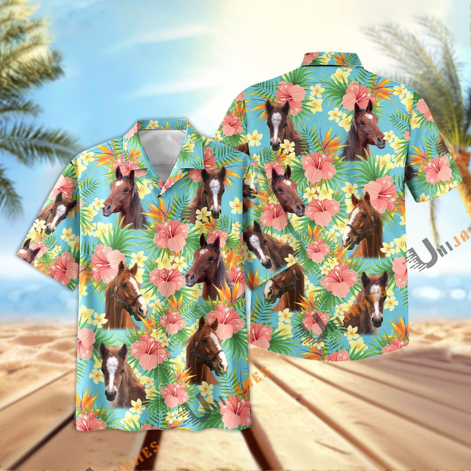 Uni Horse Tropical Plants Leaves 3D Hawaiian Shirt