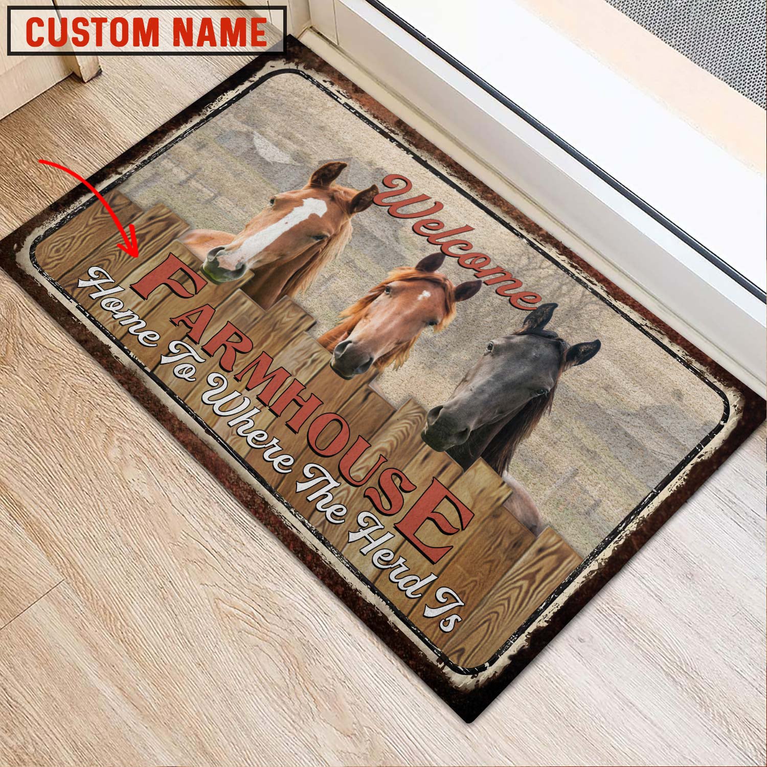 Uni Horse Welcome Custom Name Doormat