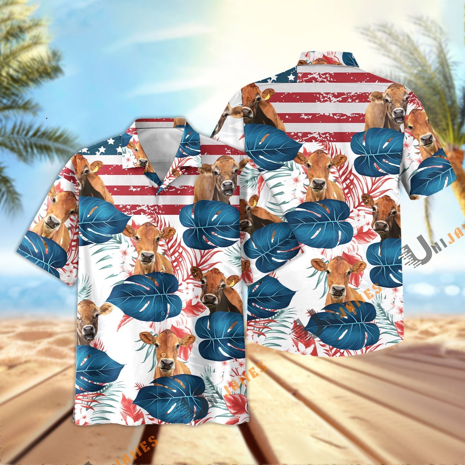 Uni Jersey US Flag Flower Hawaiian Shirt