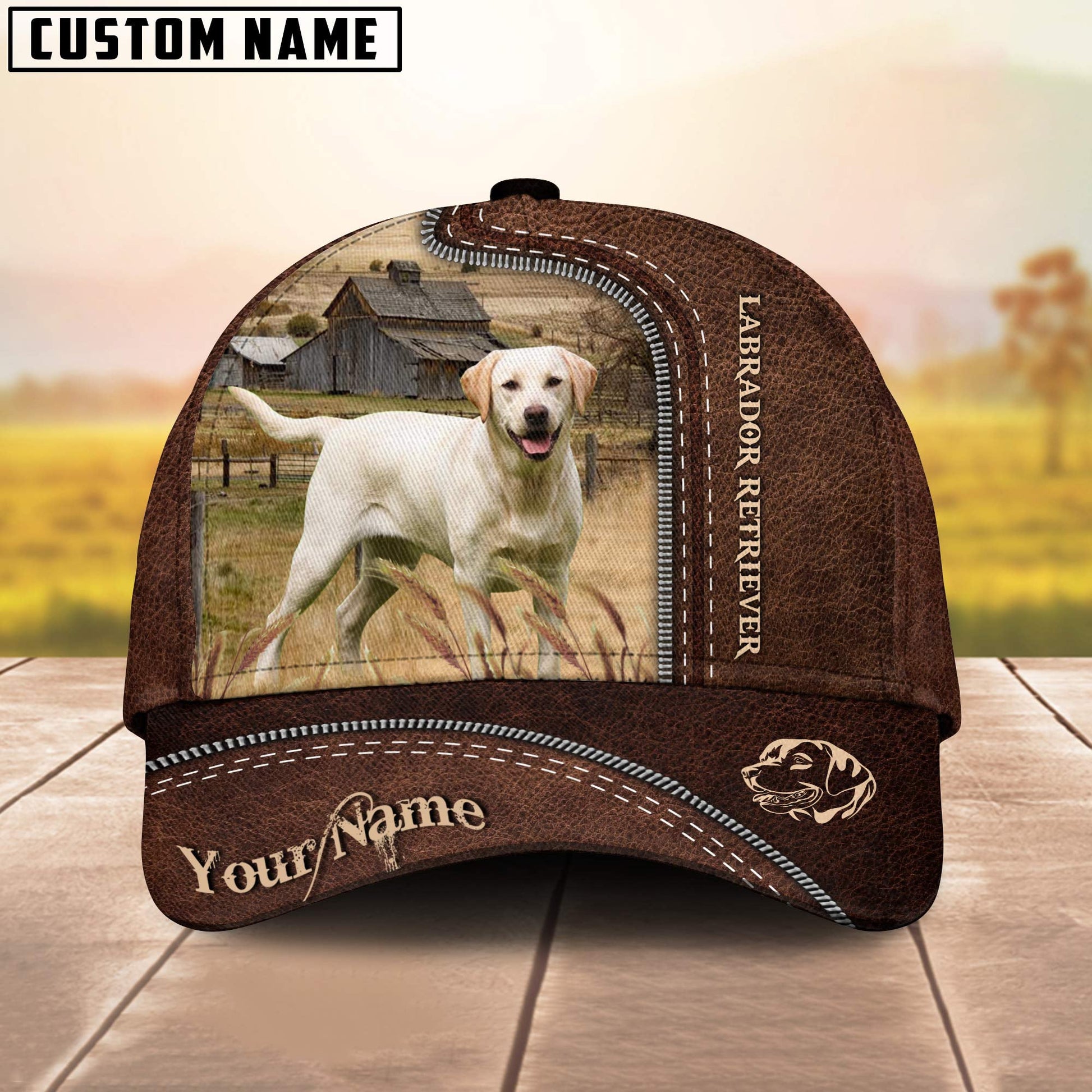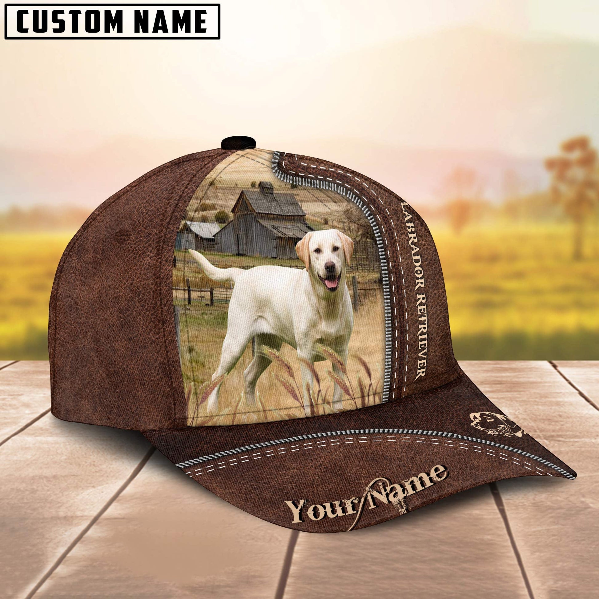 Uni Labrador Retriever Customized Name Leather Pattern Cap