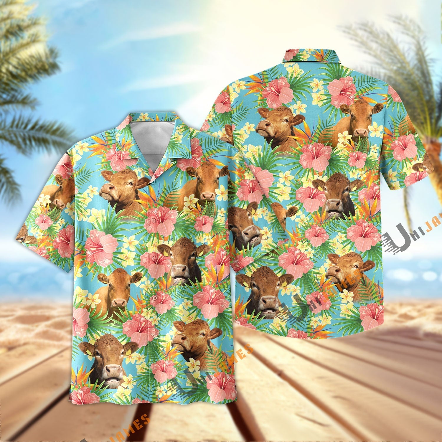 Uni Limousin Tropical Plants Leaves 3D Hawaiian Shirt