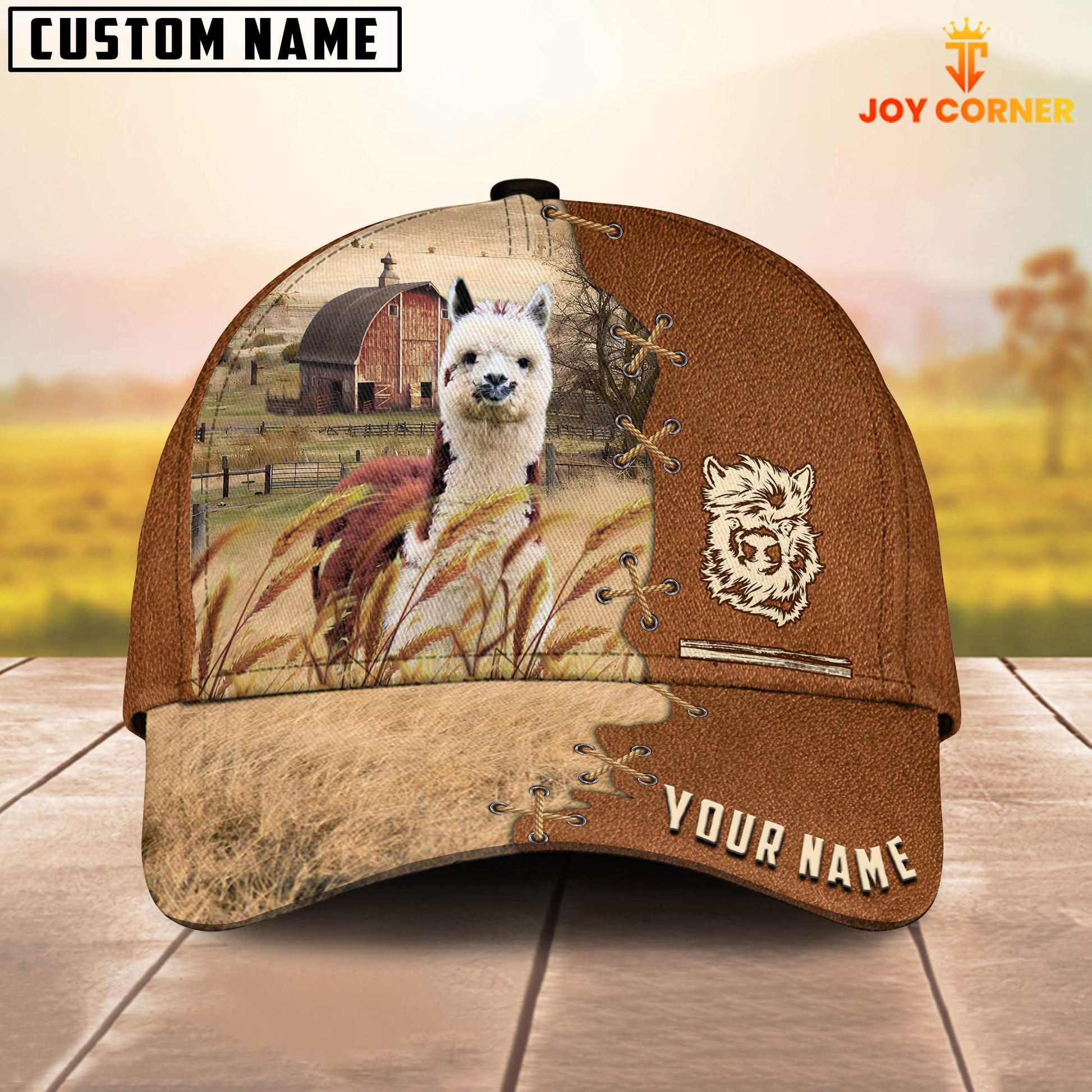 Uni Llama Custom Name Brown Leather Pattern Cap