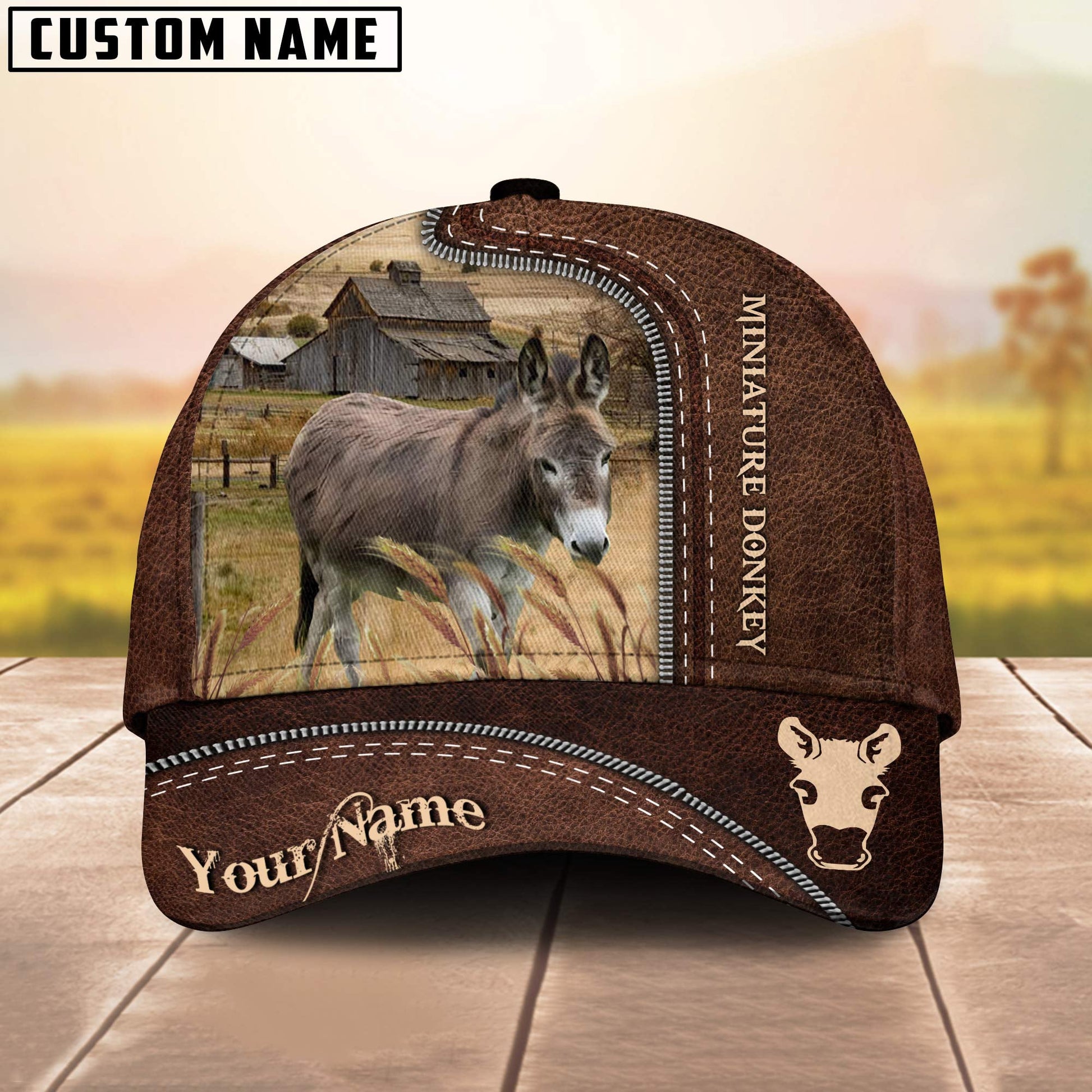 Uni Miniature Donkey Customized Name Leather Pattern Cap