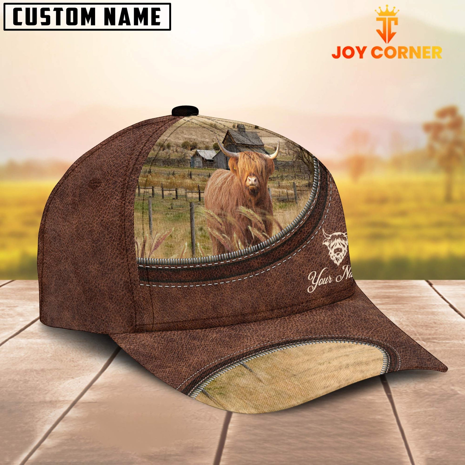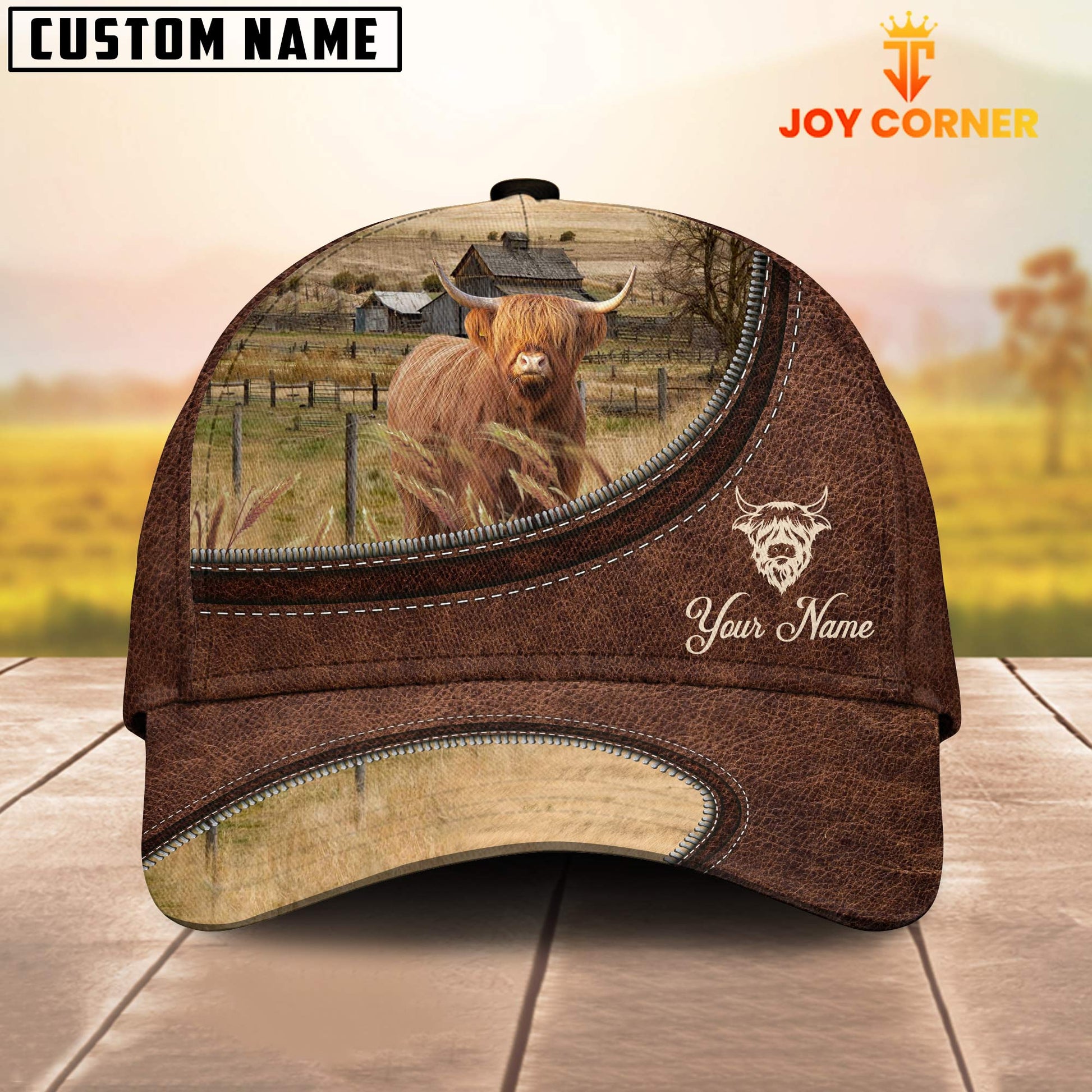Uni Miniature Highland On The Farm Customized Name Leather Pattern Cap