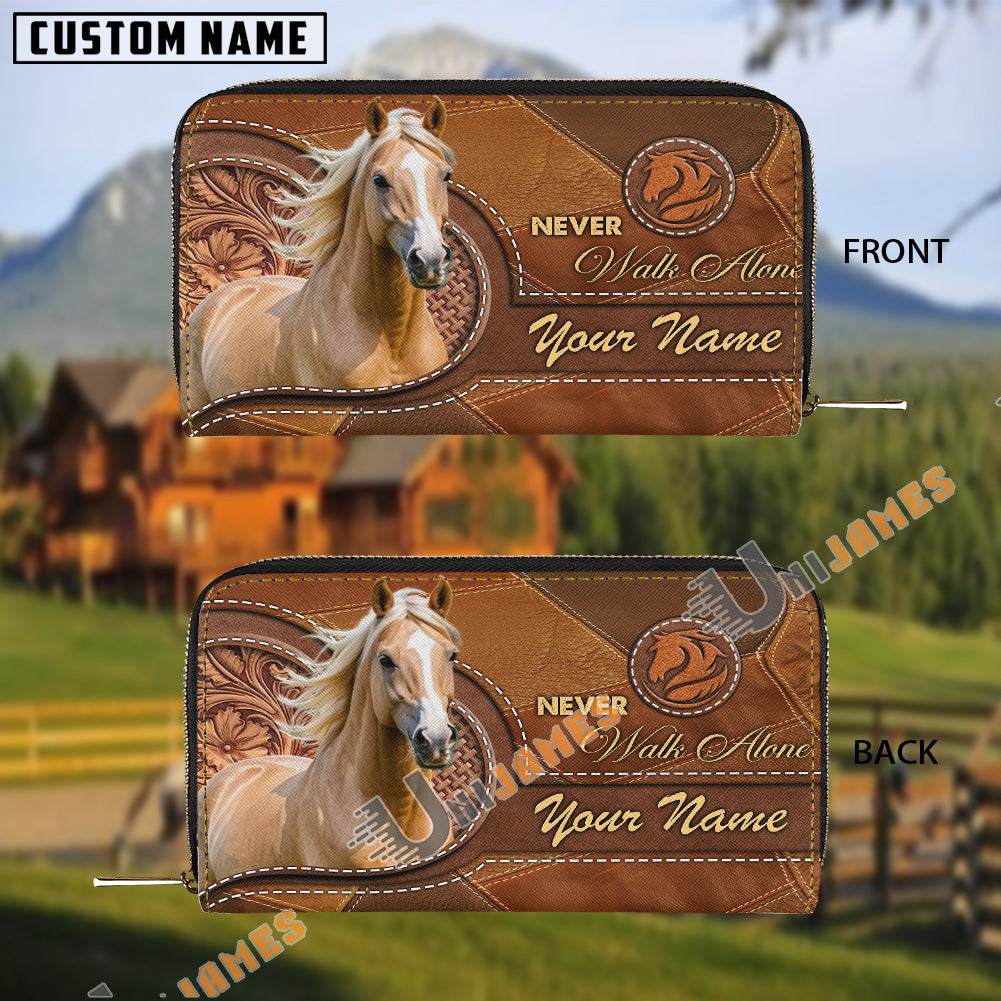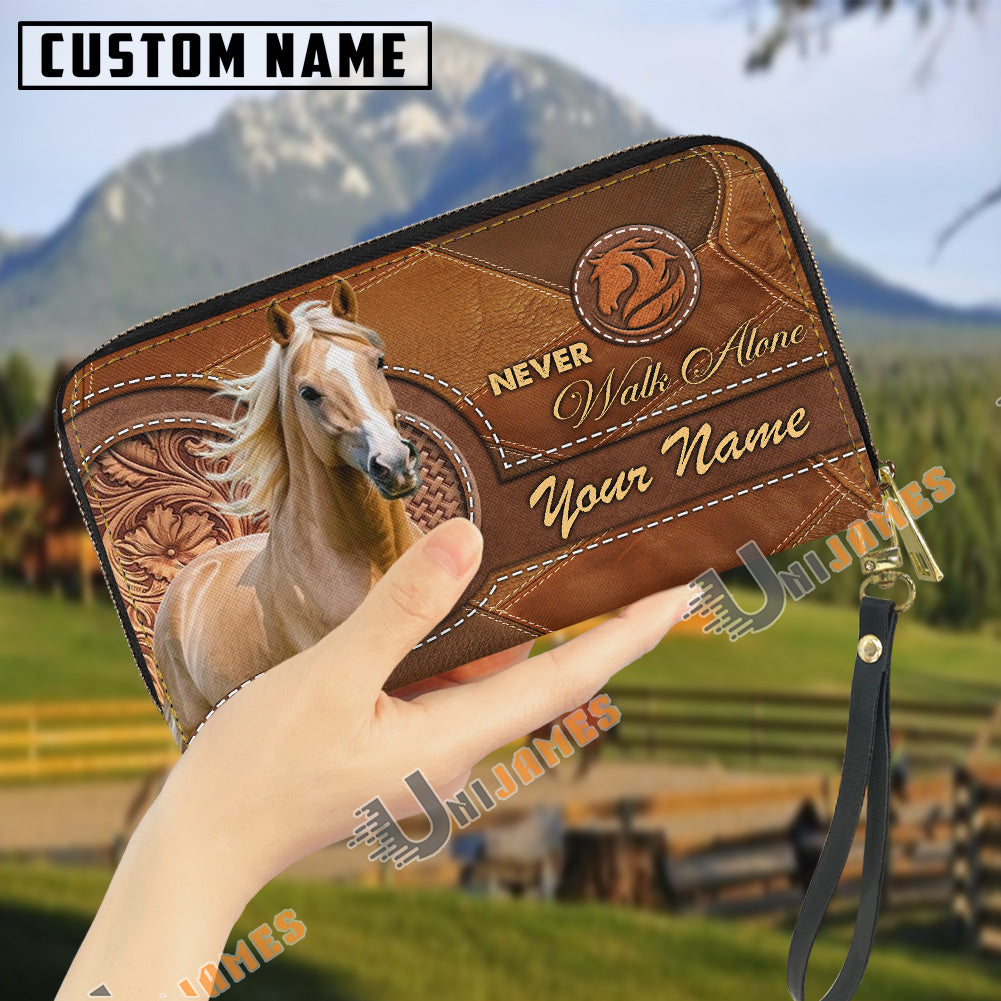 Uni Palomino Never Walk Alone Custom Name 3D Leather Clutch