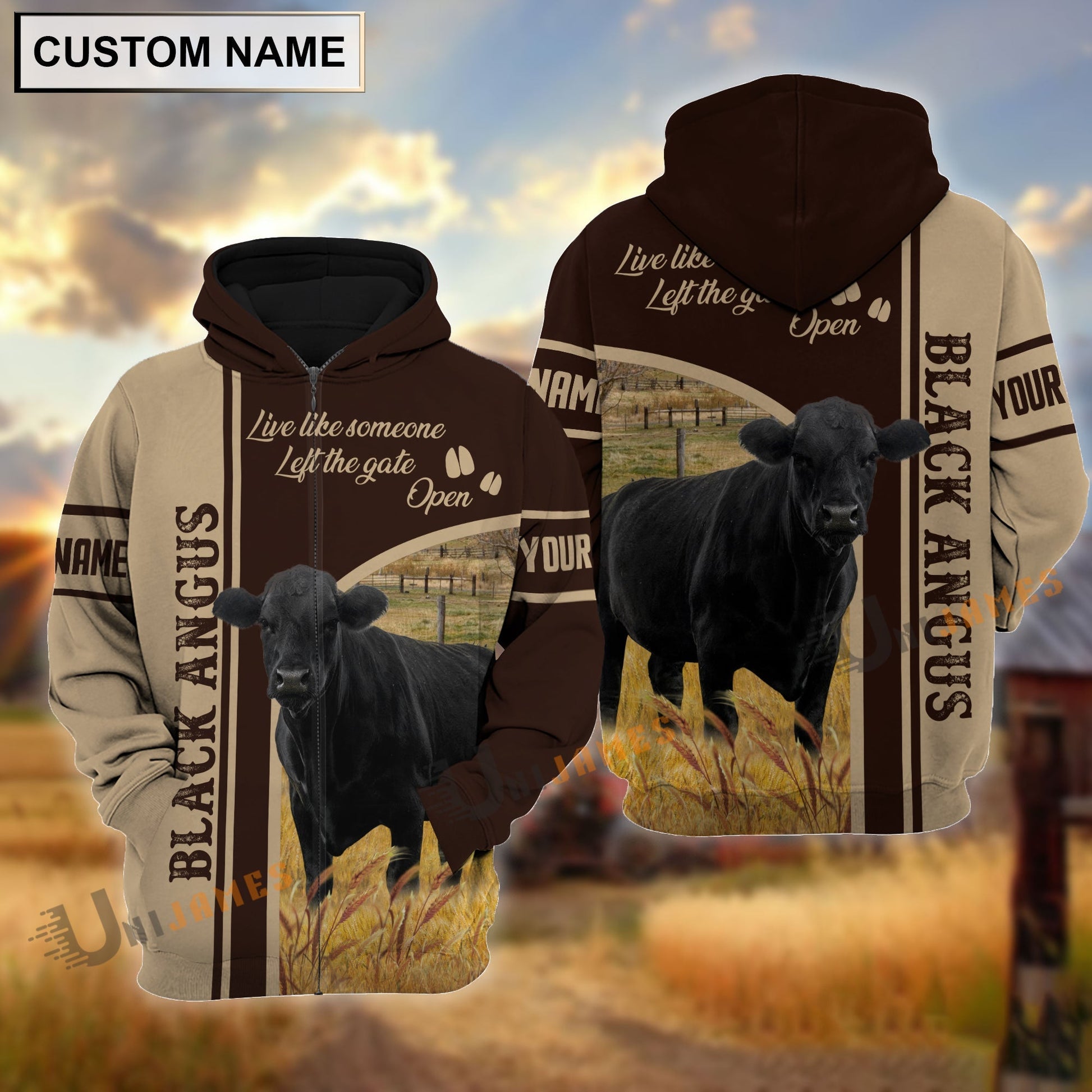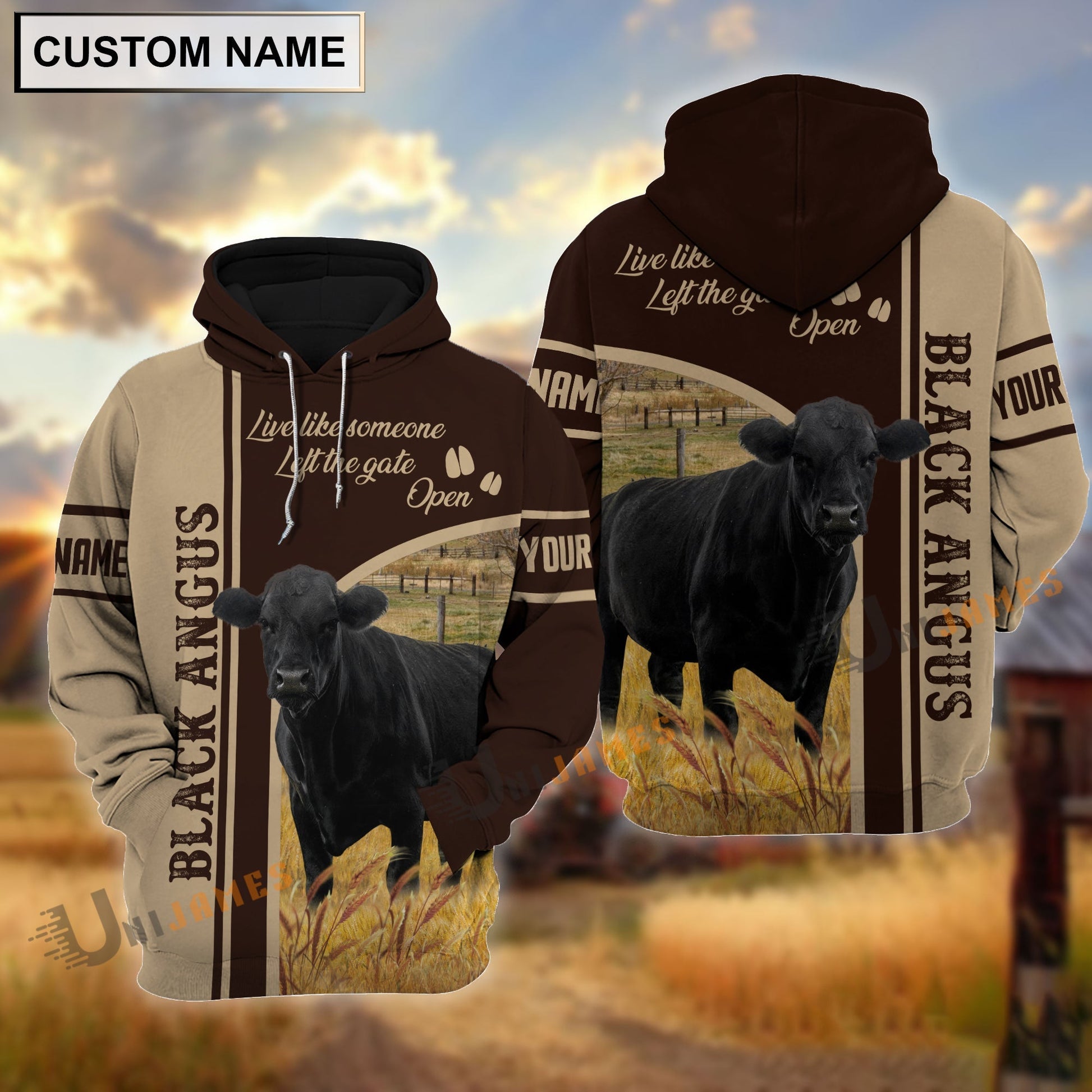 Uni Personalized Name Black Angus Live Like Someone Left The Gate 3D Shirt