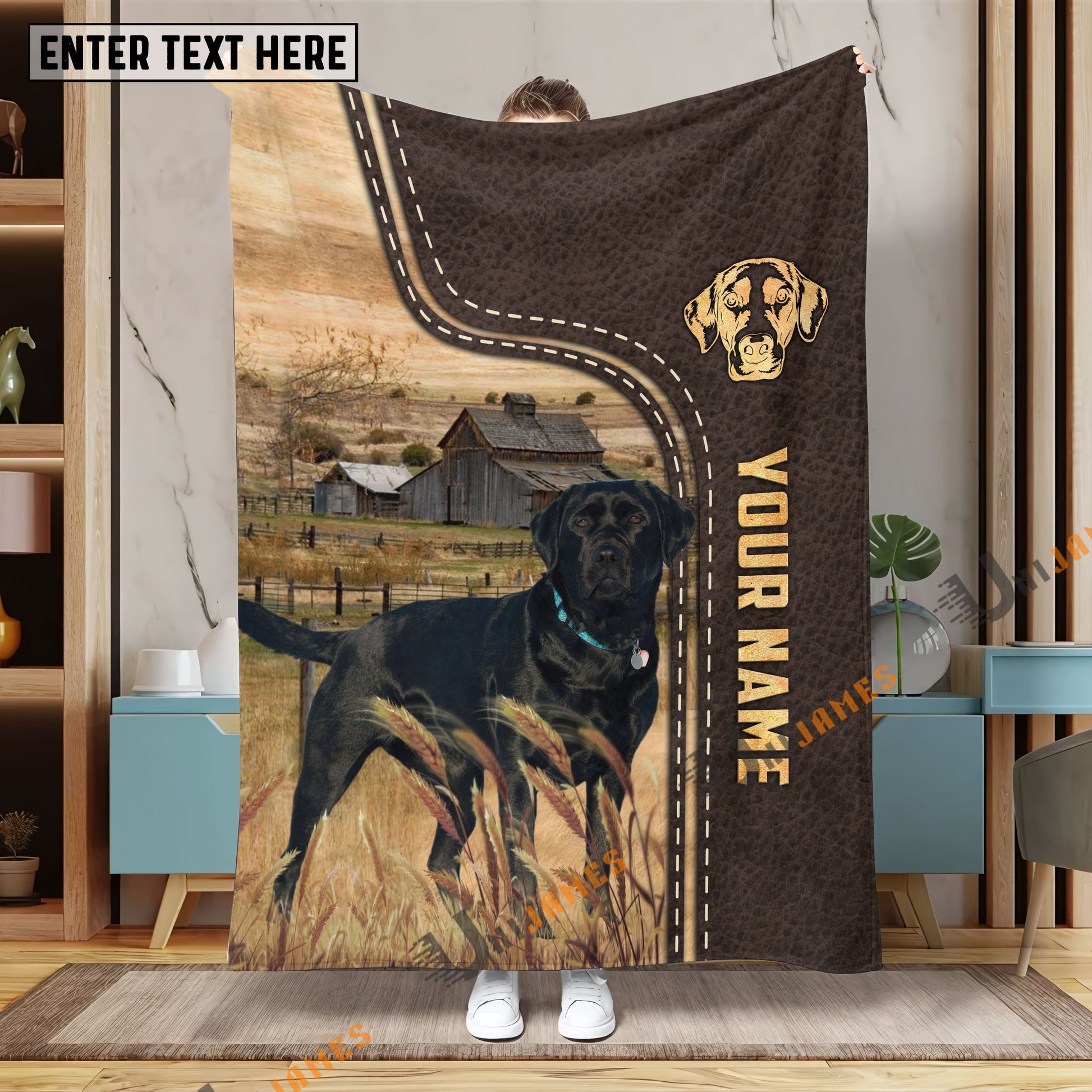 Uni Personalized Name Black Labrador Leather Pattern Blanket