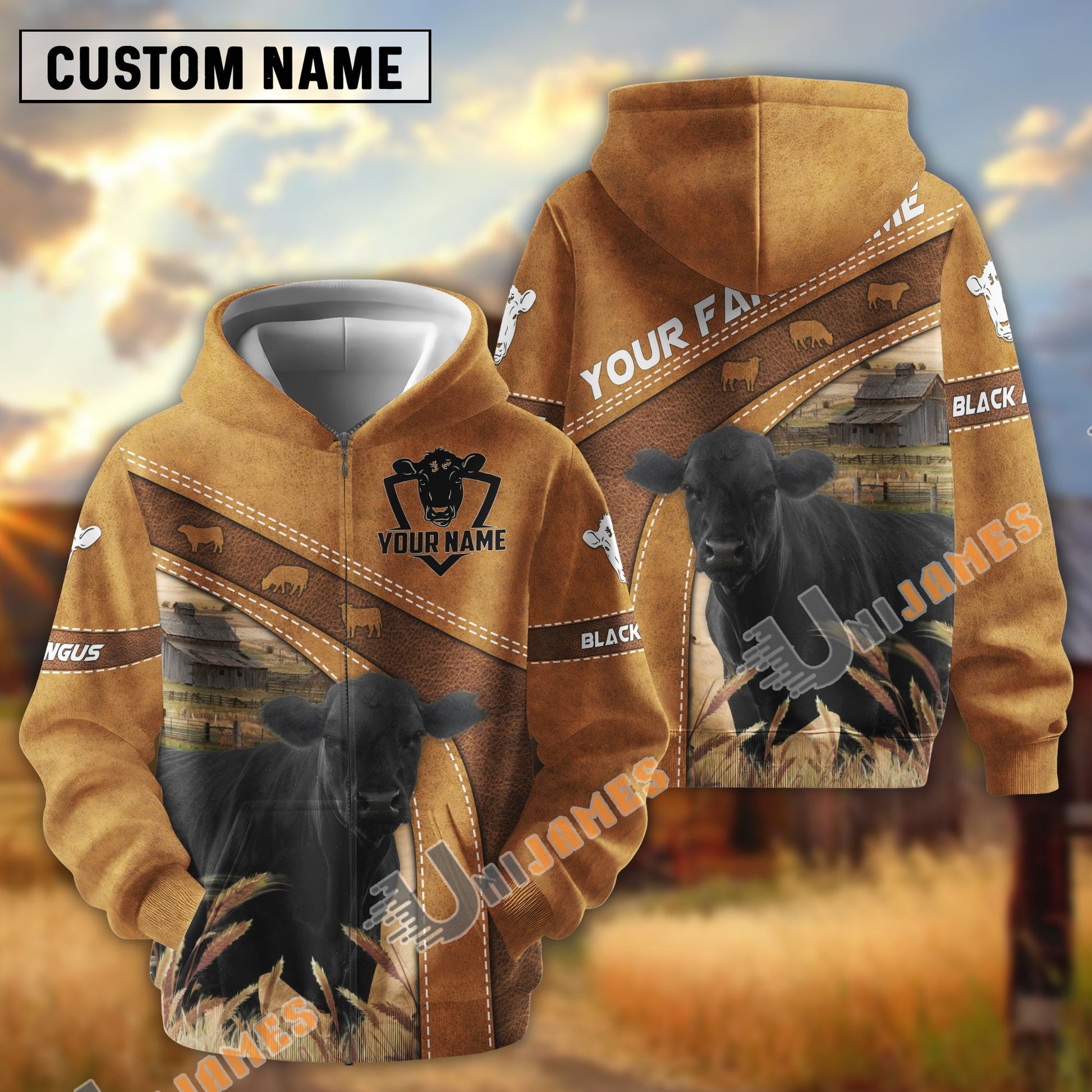 Uni Personalized Name Farm Black Angus Cattle Hoodie