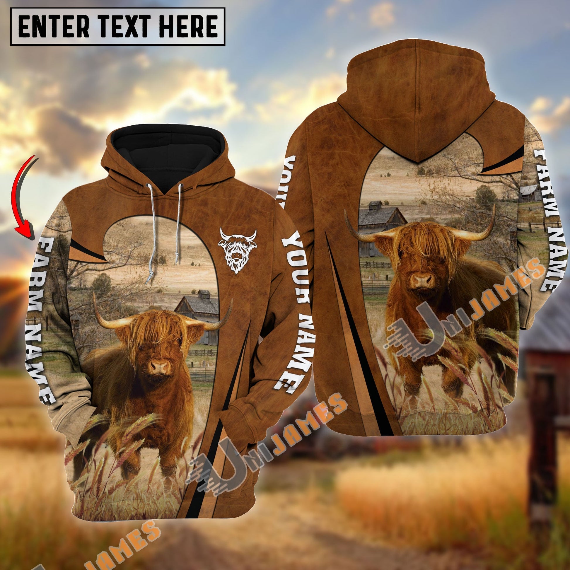 Uni Personalized Name, Farm Name Highland Premium Brown Pattern Hoodie