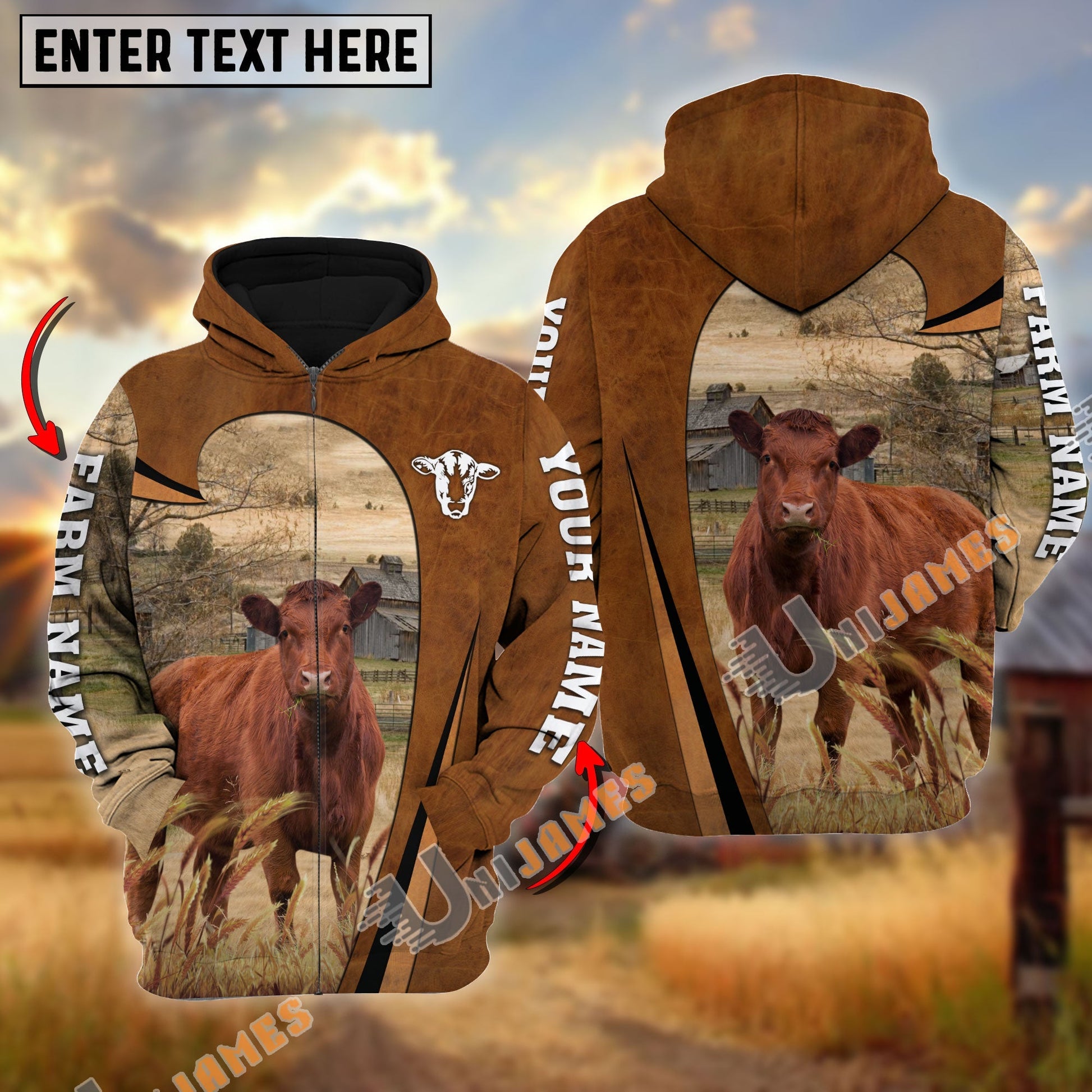 Uni Personalized Name, Farm Name Red Angus Premium Brown Pattern Hoodie