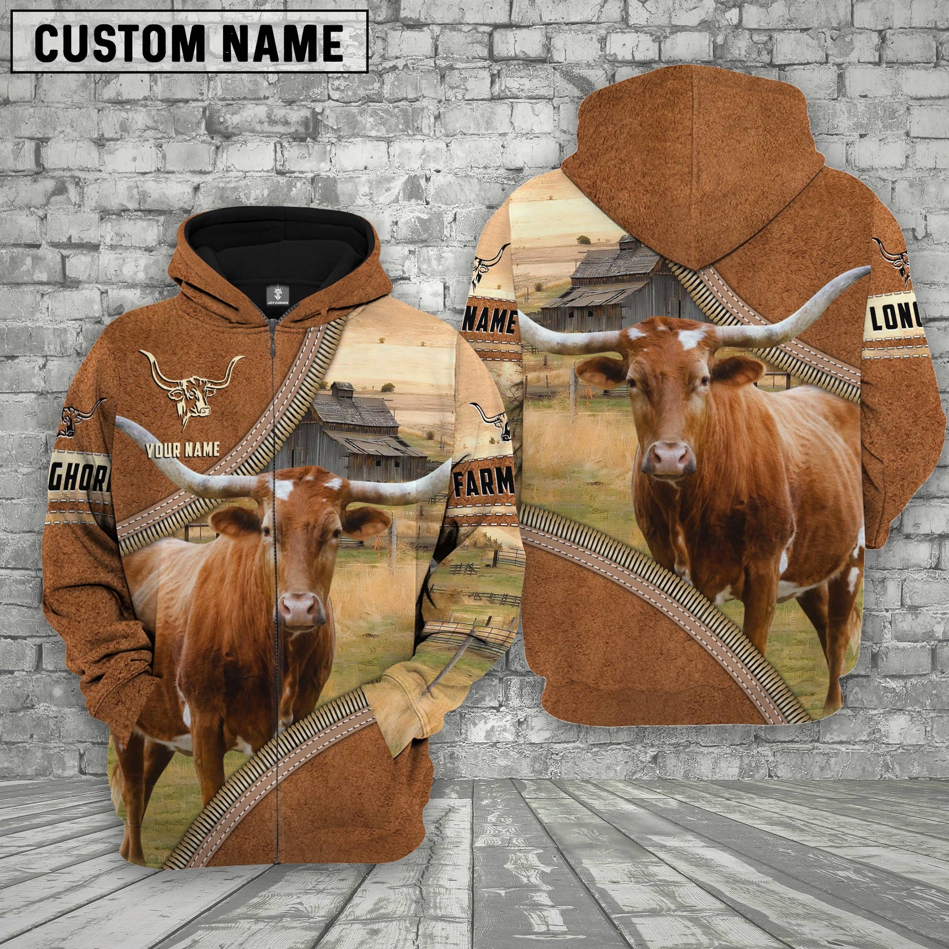 Uni Personalized Name Farm Texas Longhorn Cattle Light Brown Hoodie