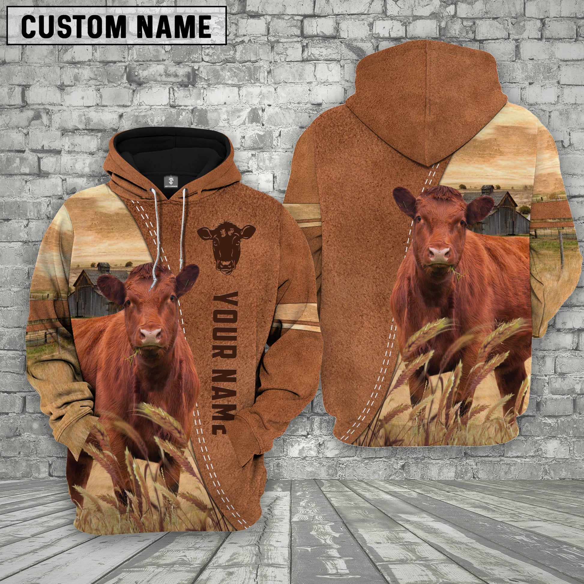 Uni Personalized Name Red Angus Brown 3D Shirt