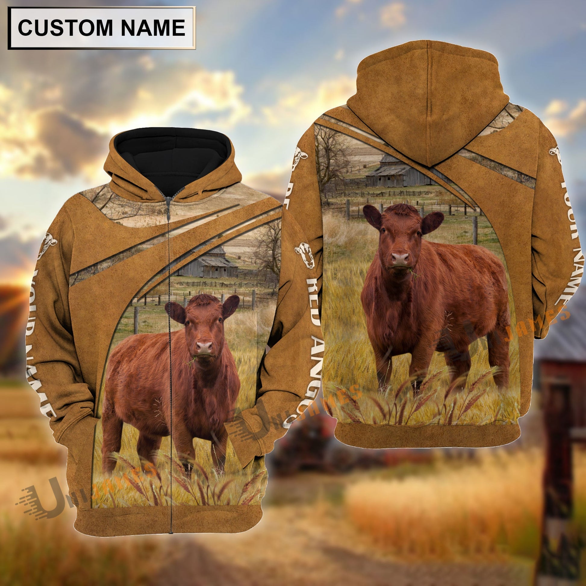 Uni Personalized Name Red Angus Farming Life 3D Shirt