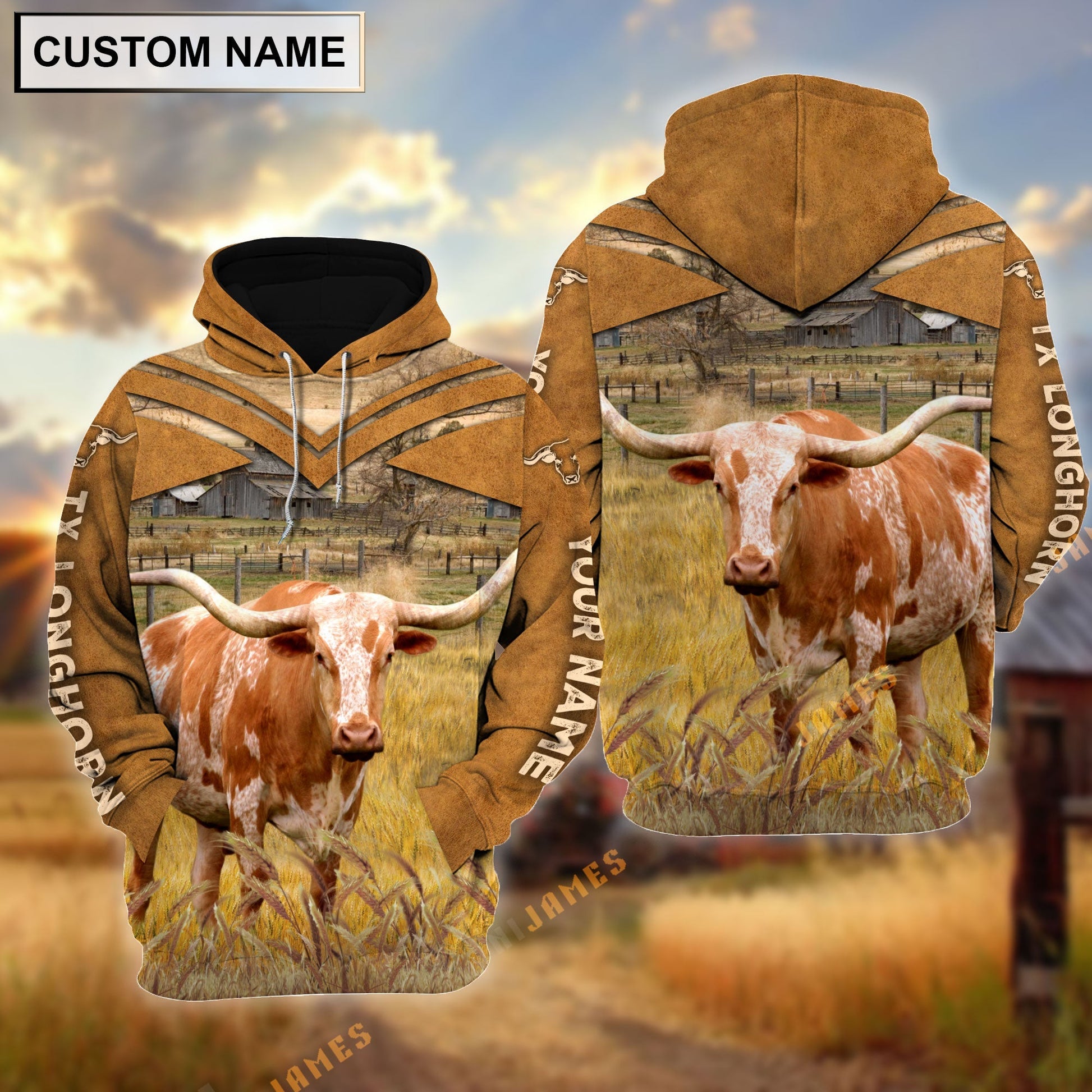Uni Personalized Name Texas Longhorn Brown Pattern 3D Hoodie
