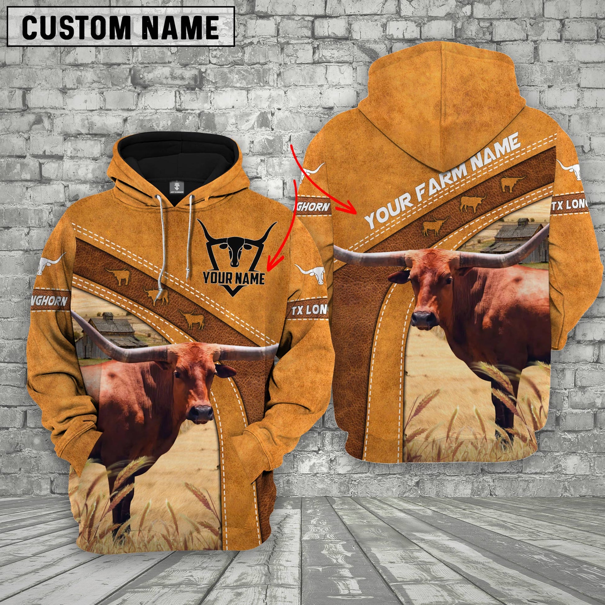 Uni Personalized Name Texas Longhorn Cattle Hoodie