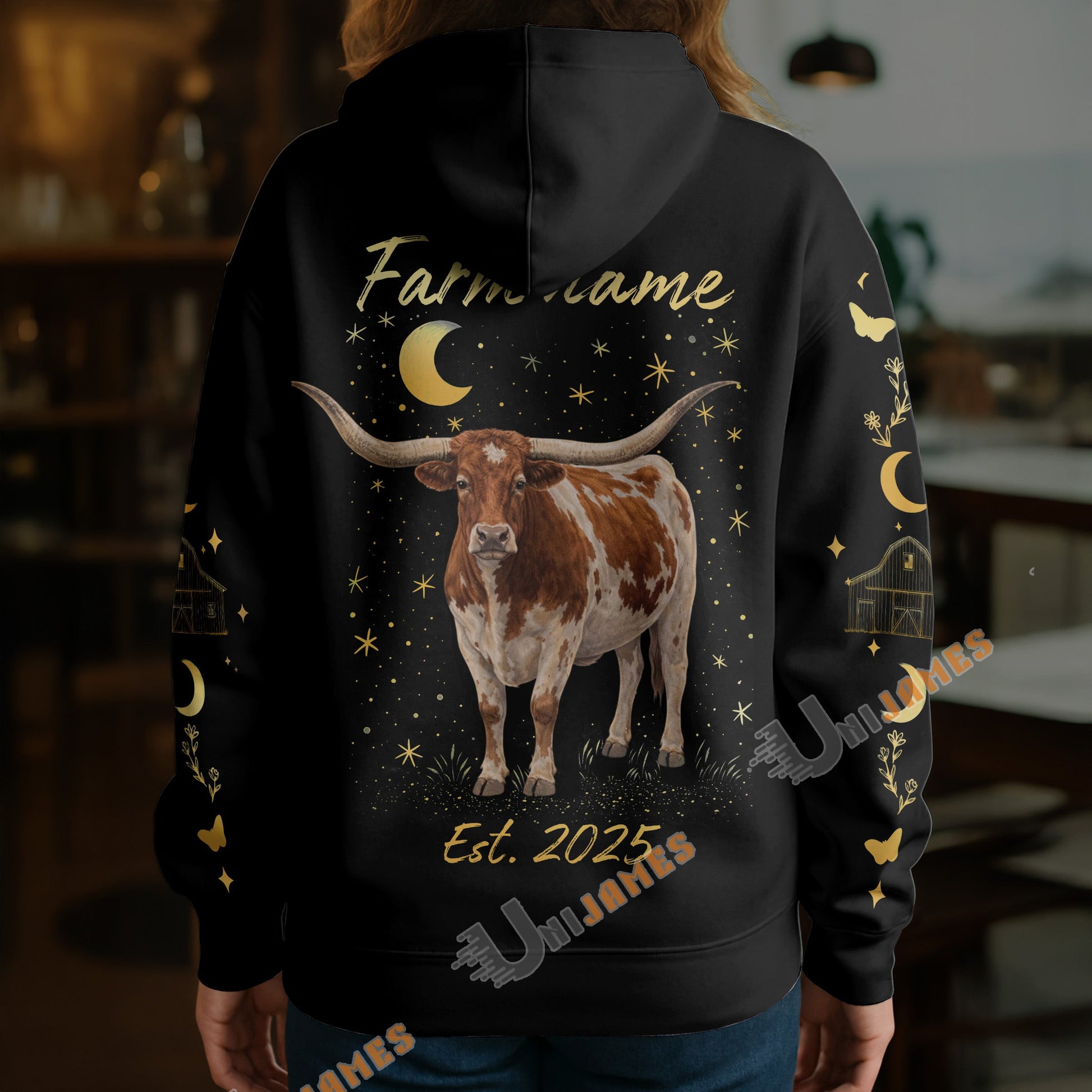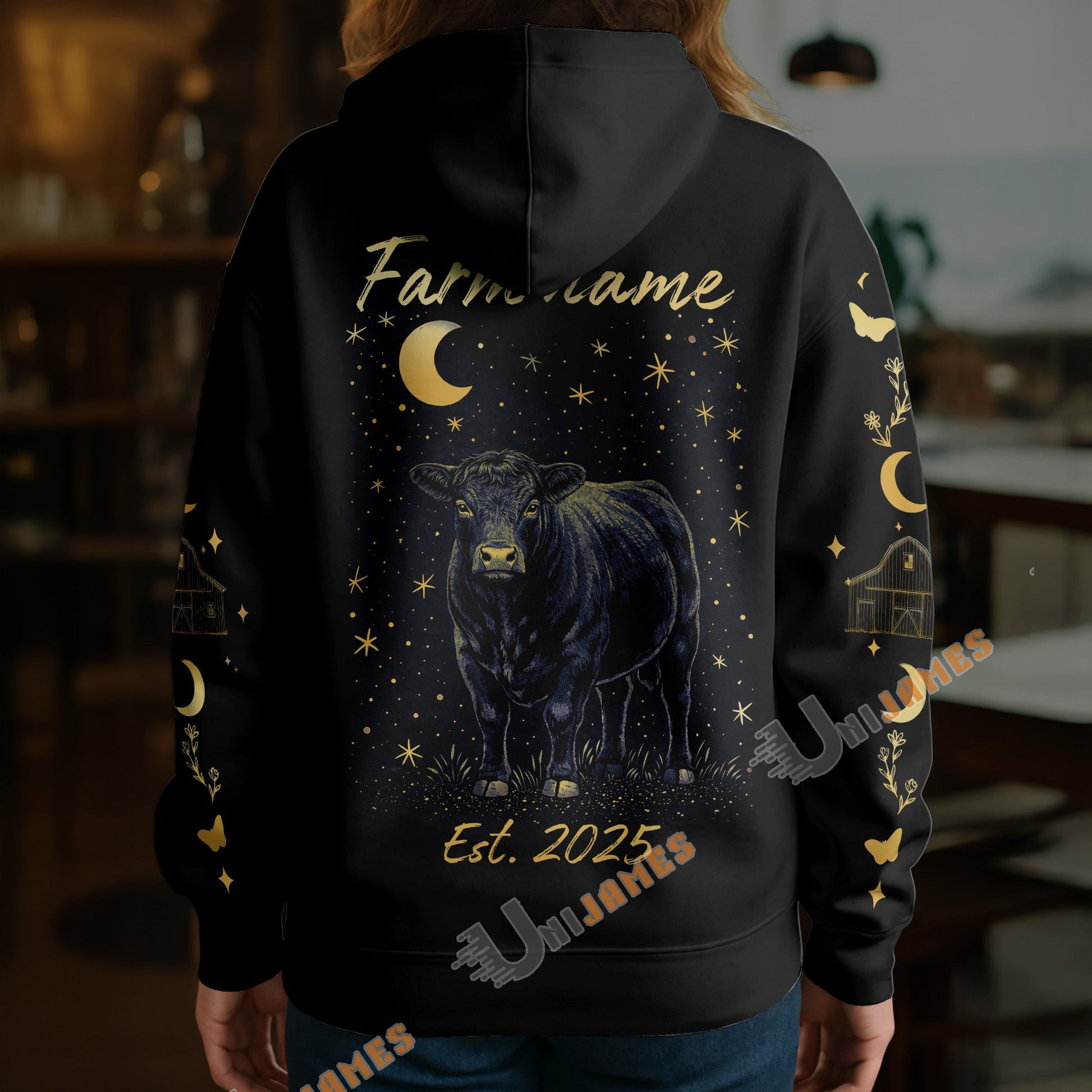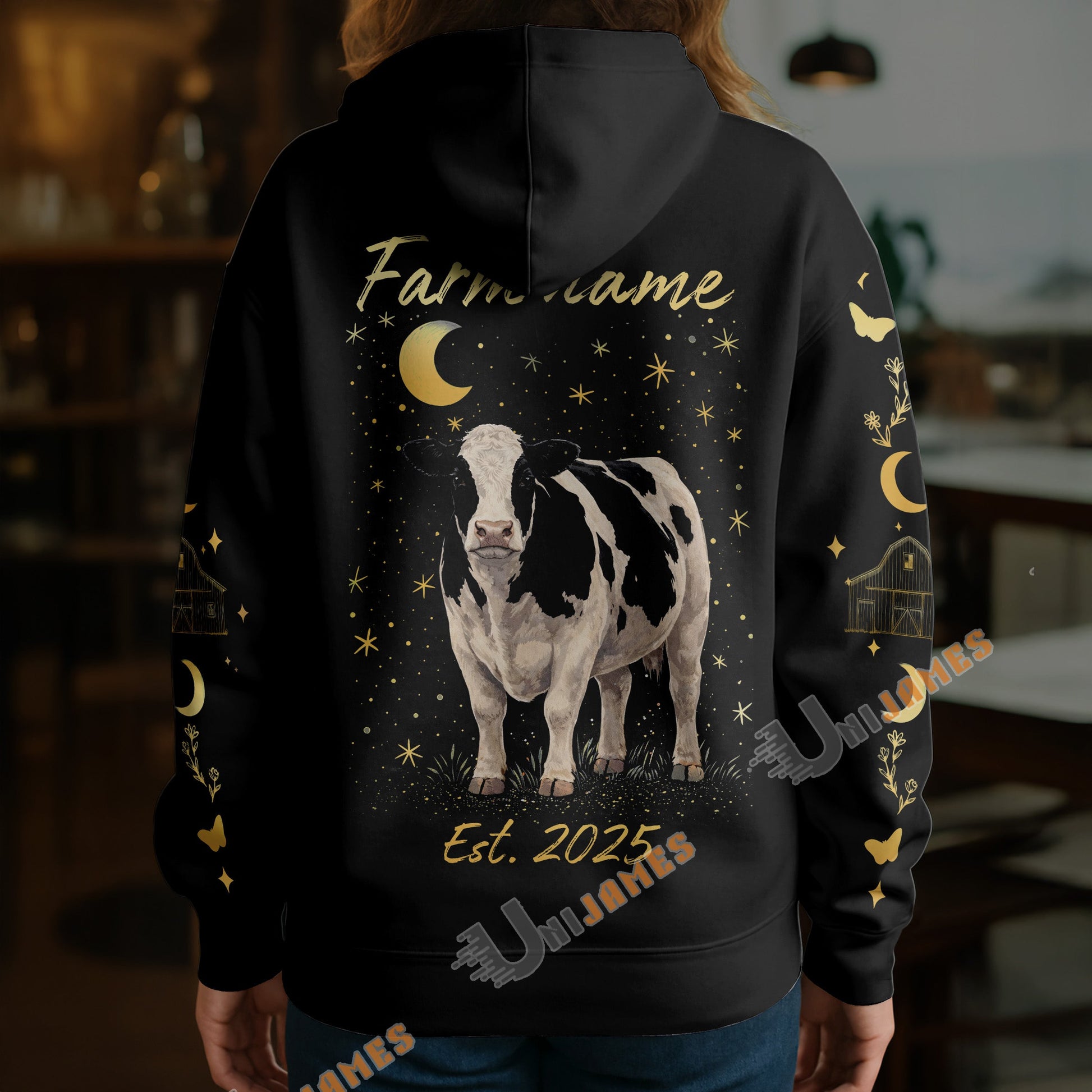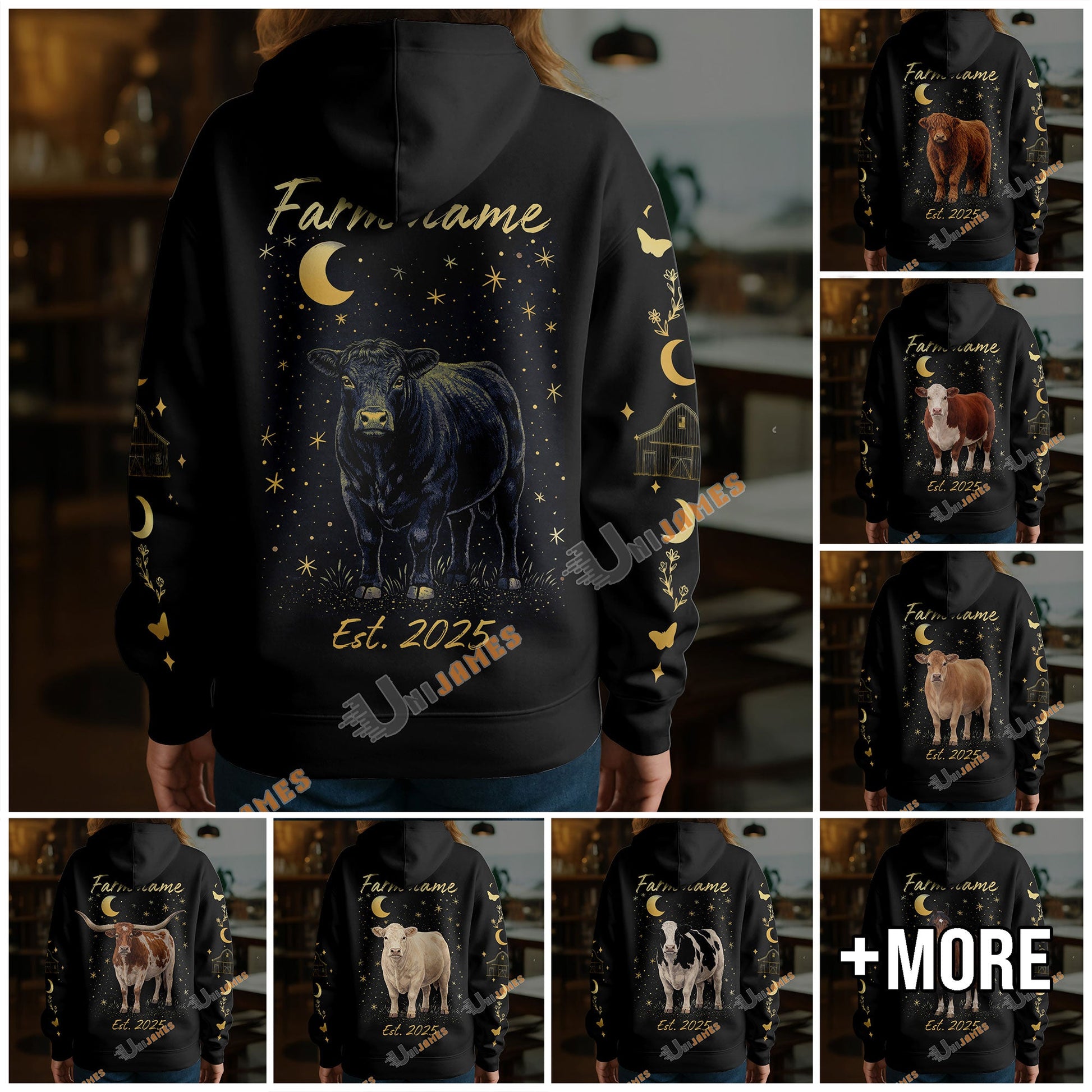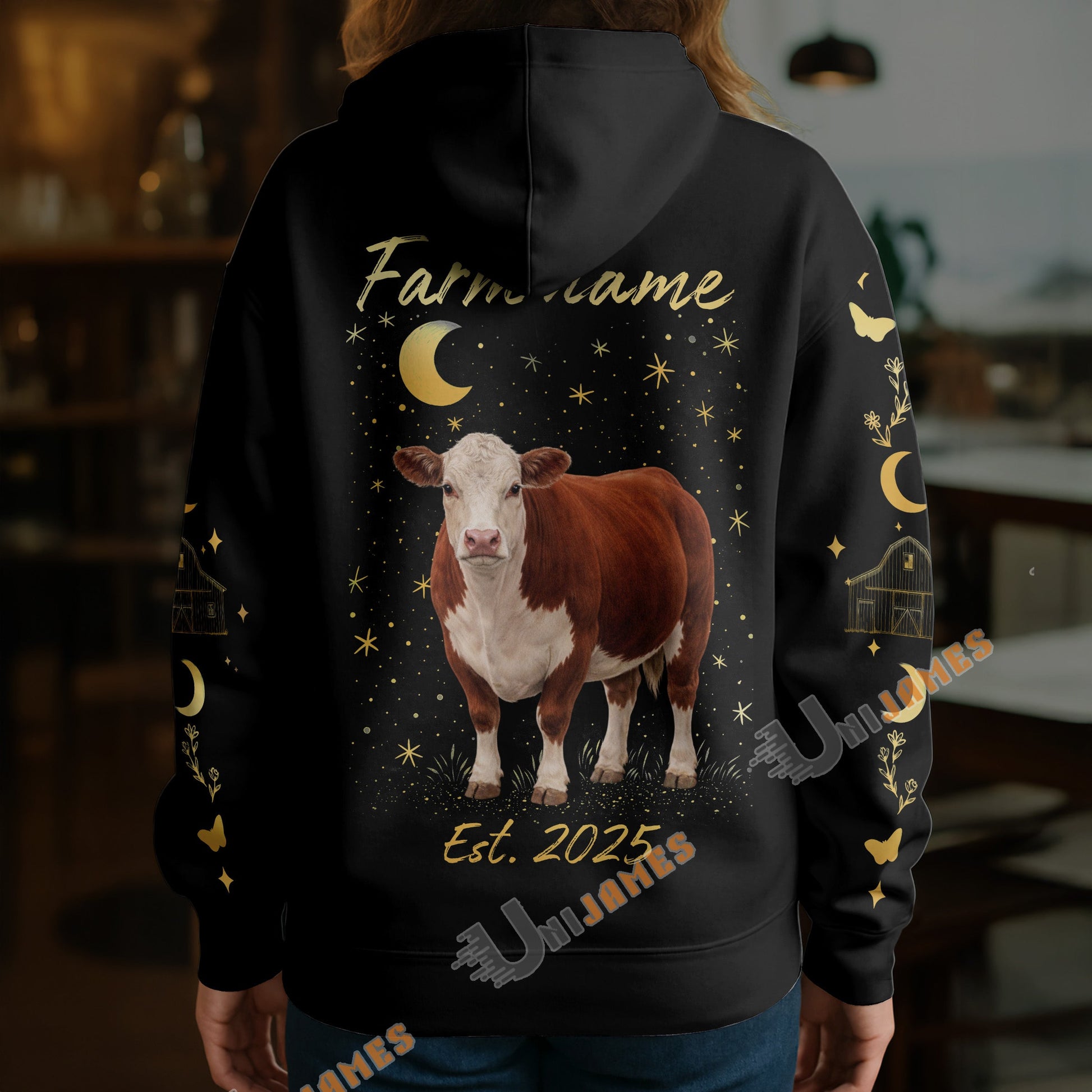 Uni Personalized Starlight Cow Farm Custom Name Hoodie (8 Cattle Breeds)
