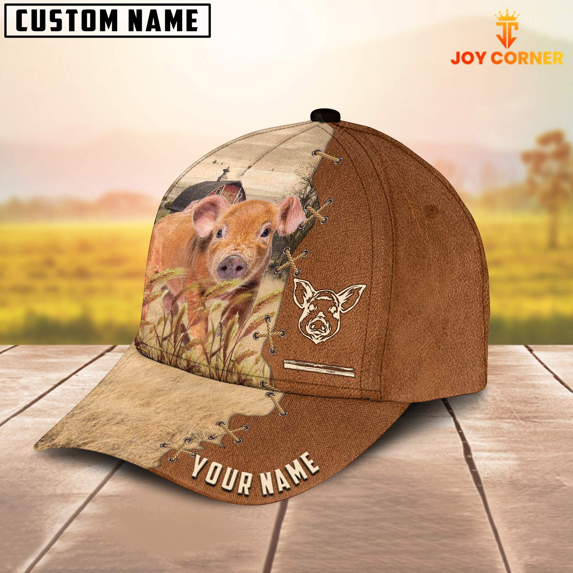 Uni Pig Brown Custom Name Brown Leather Pattern Cap