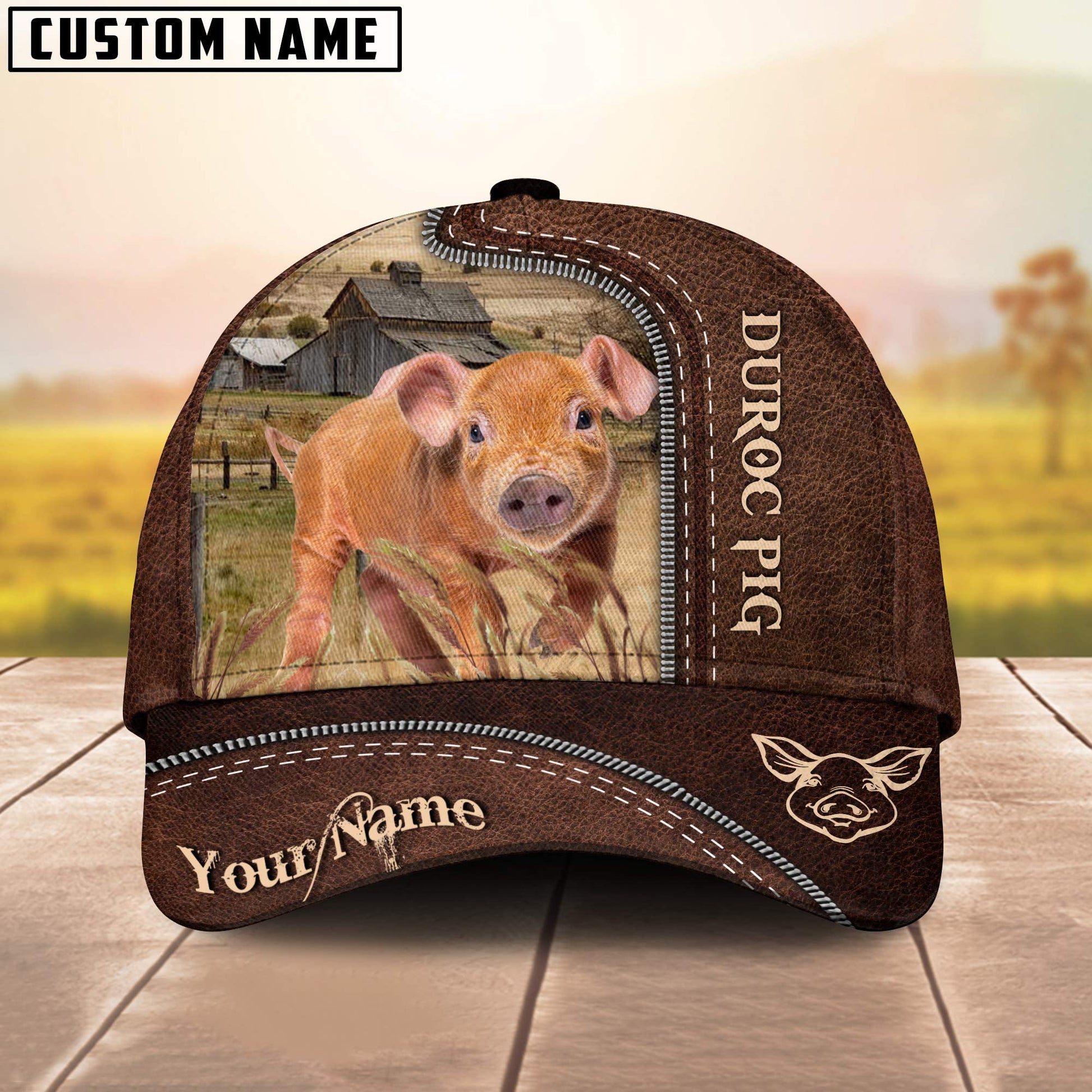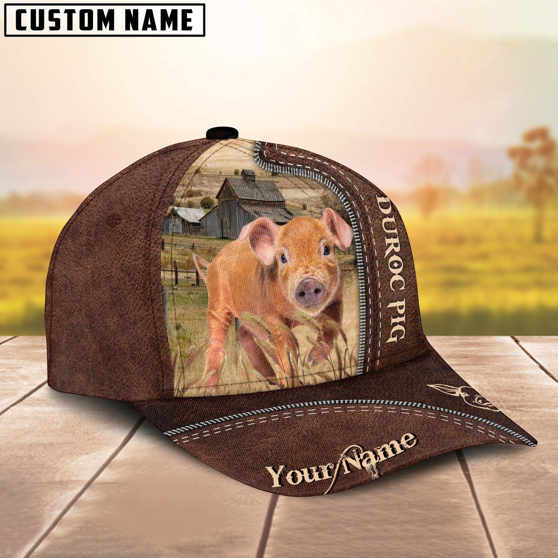 Uni Pig Brownie Customized Name Leather Pattern Cap