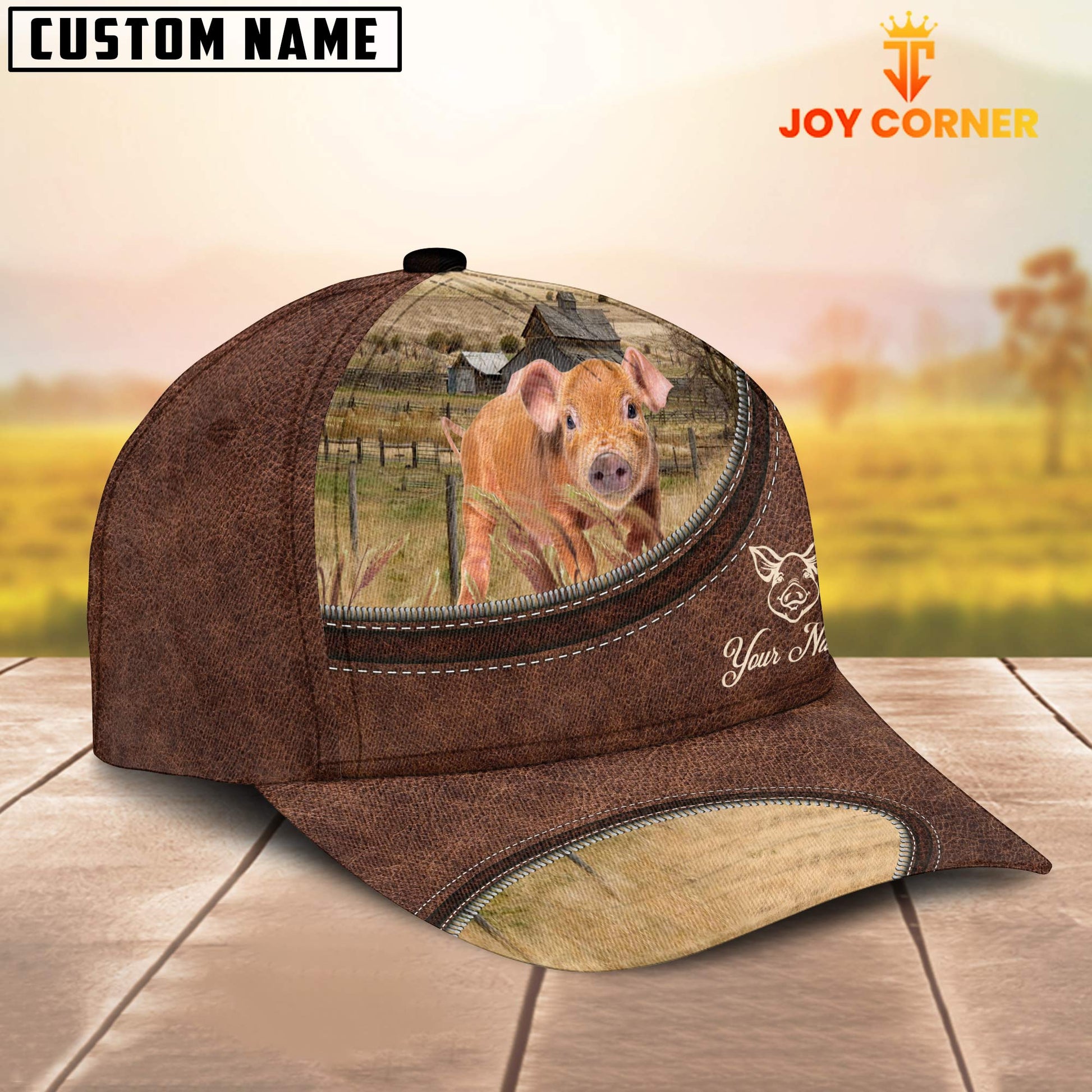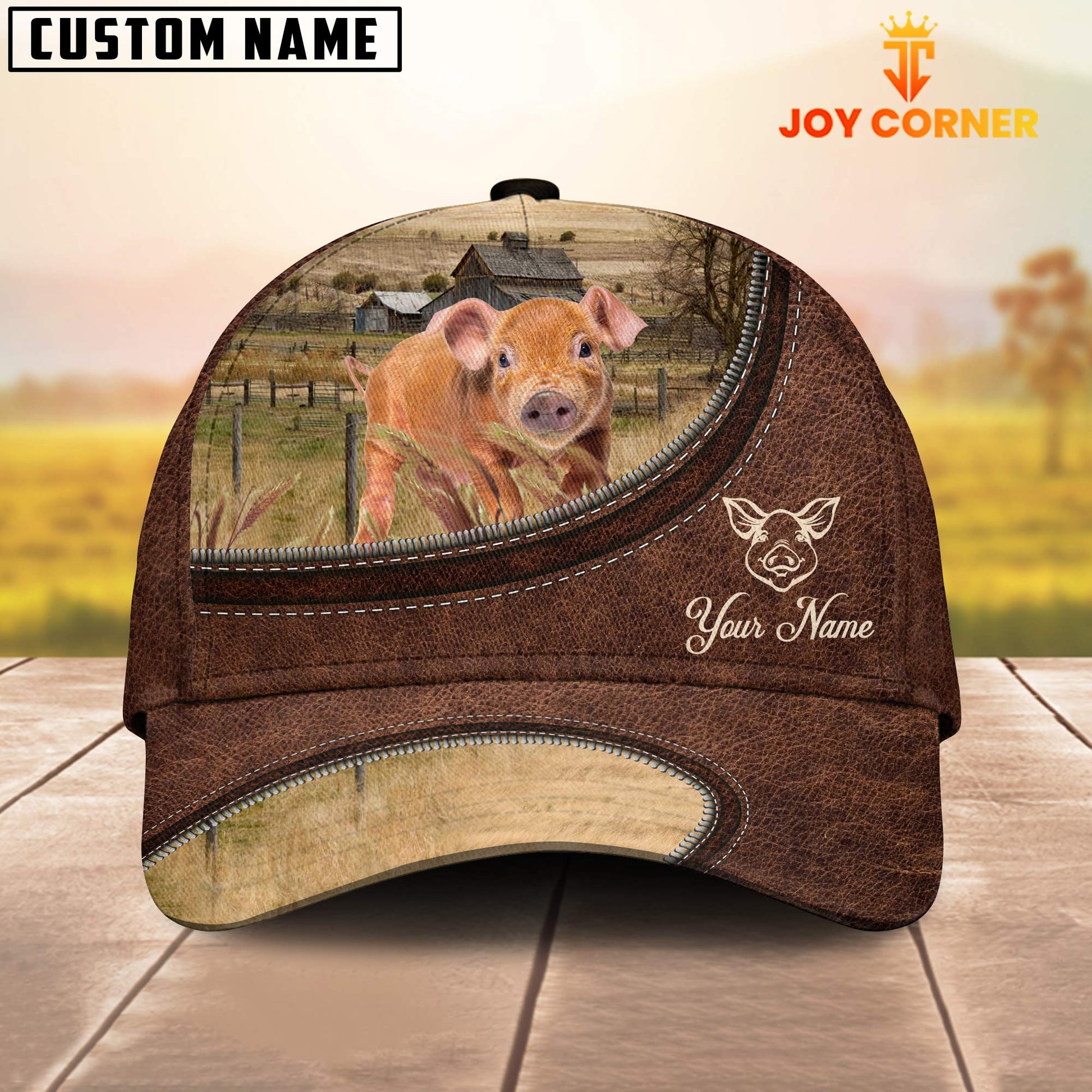 Uni Pig Brownie On The Farm Customized Name Leather Pattern Cap