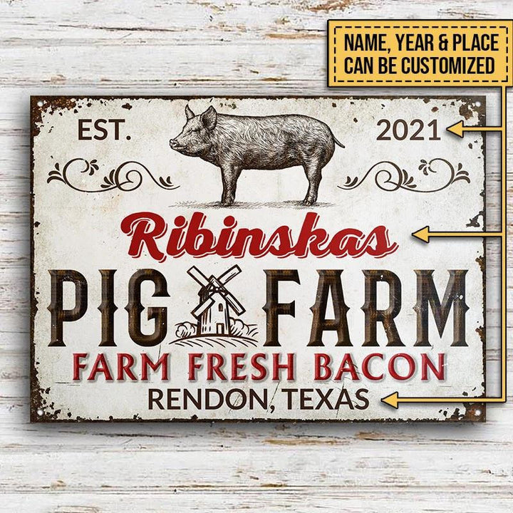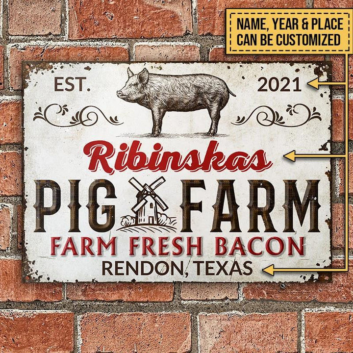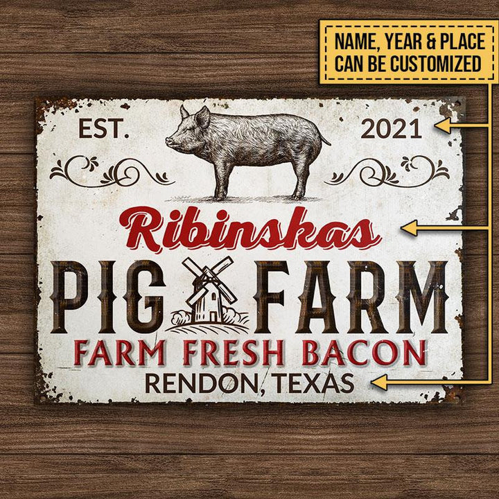 uni Pig Farm Fresh Bacon White Rectangle Metal Sign Custom Text