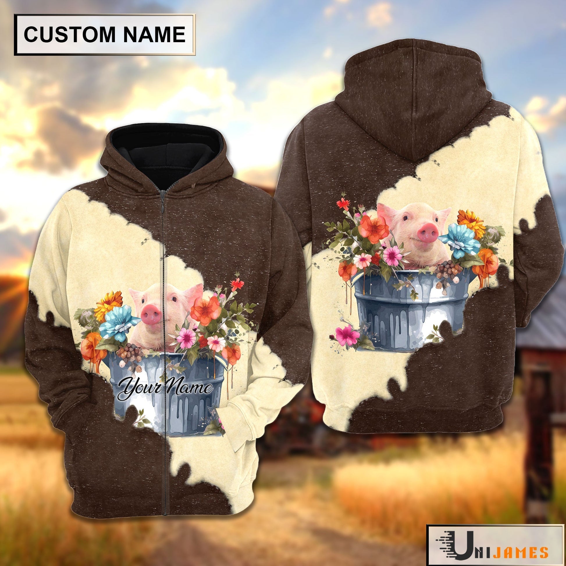Uni Pig In Bucket Brown Tie Dye Personalized Hoodie