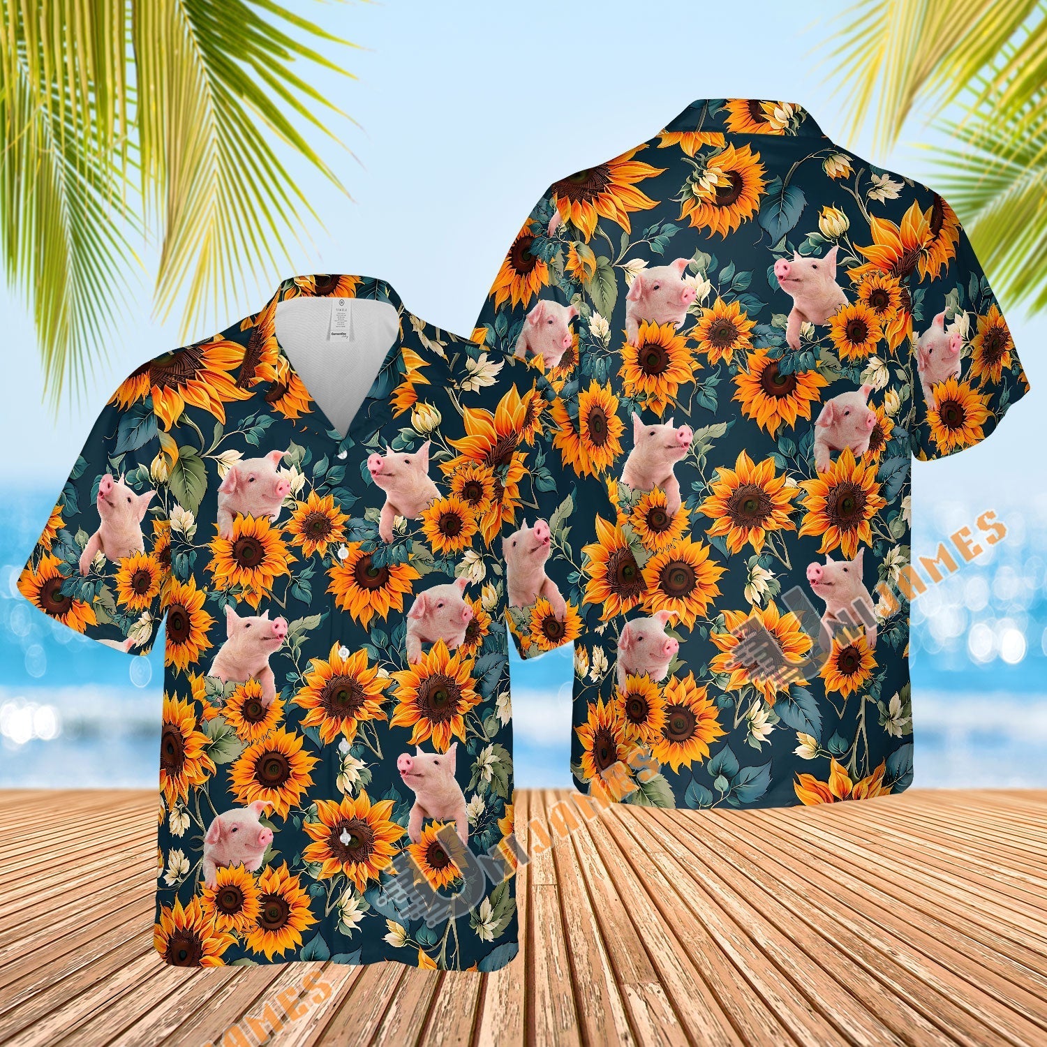 Uni Pig Sunflowers Blue 3D Hawaiian Shirt