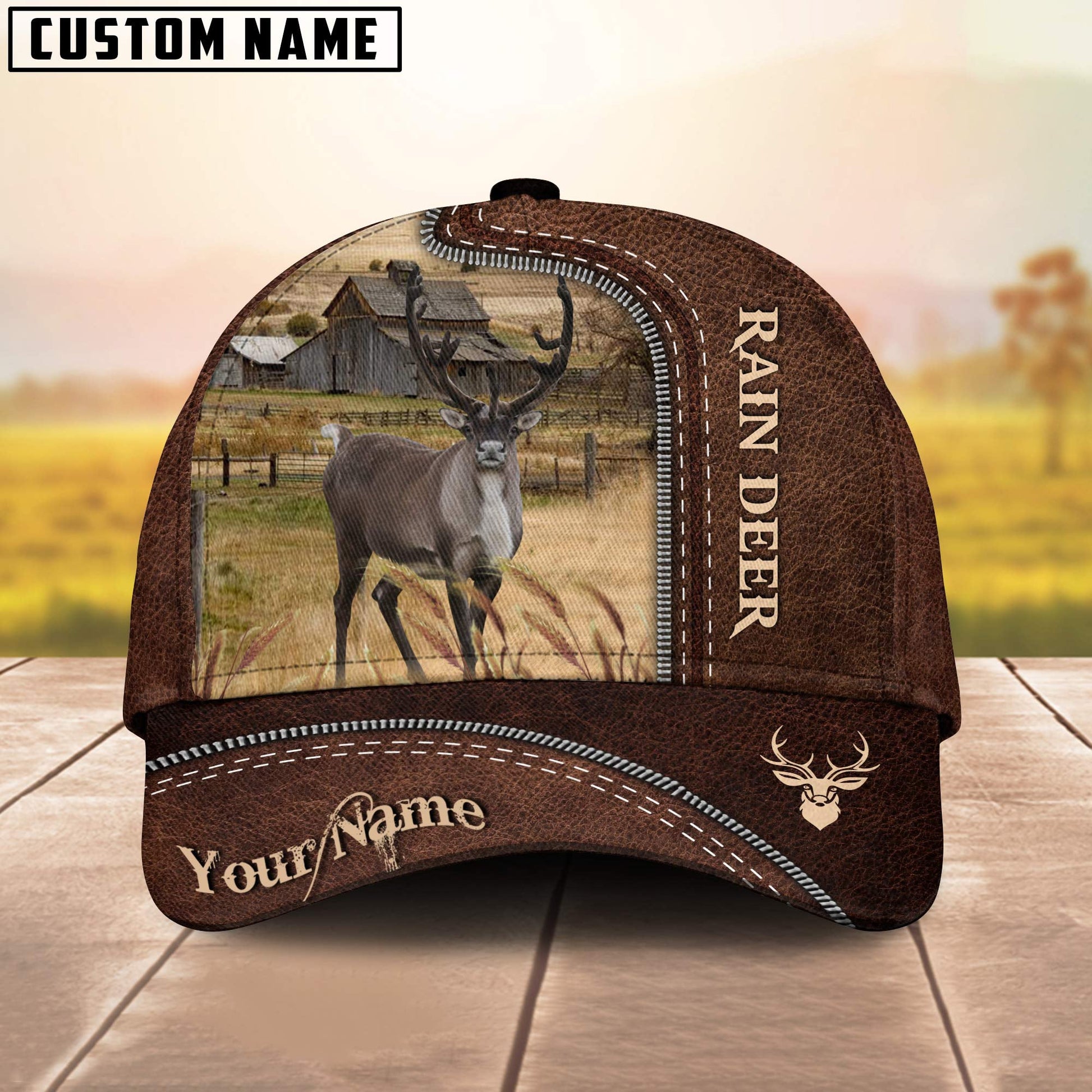 Uni Rain Deer Customized Name Leather Pattern Cap