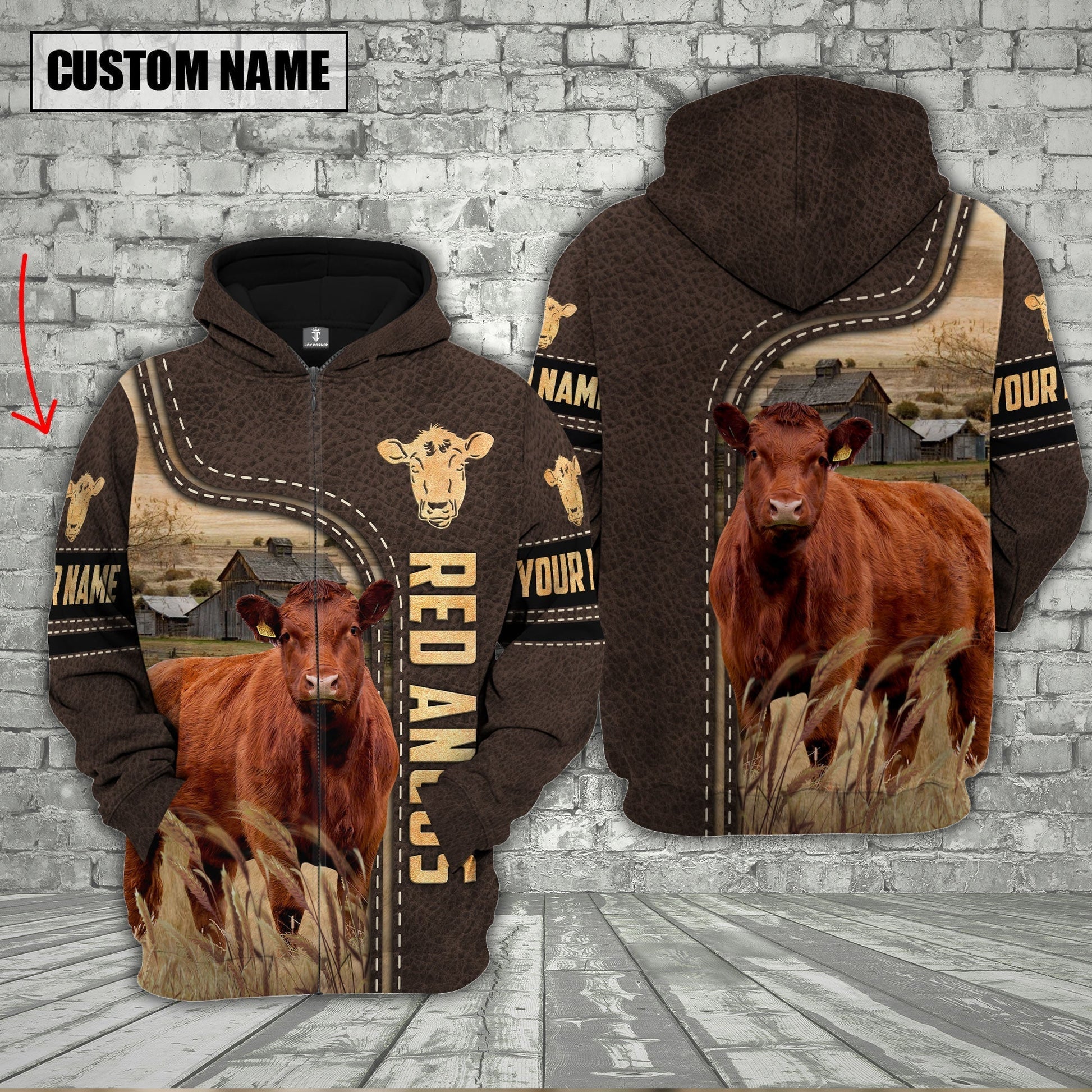 Uni Red Angus Cattle Brown Leather Personalized 3D Hoodie