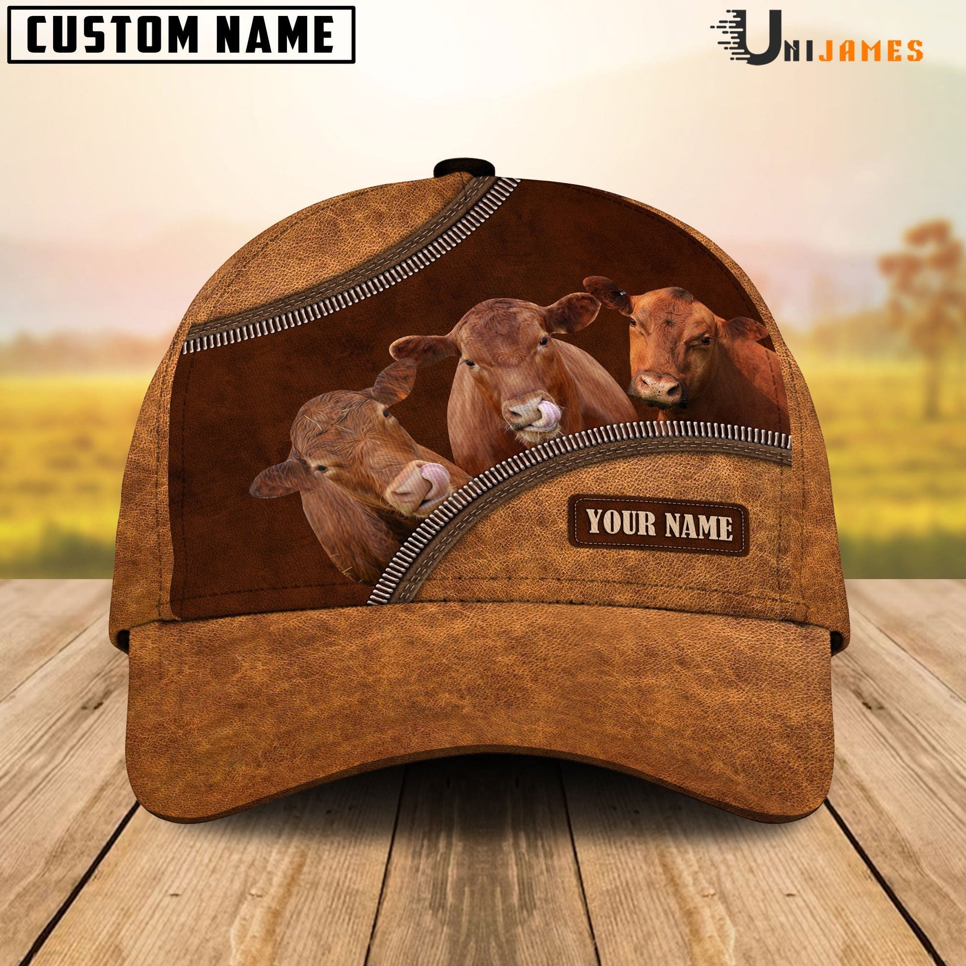 Uni Red Angus Happiness Leather Pattern Customized Name Cap