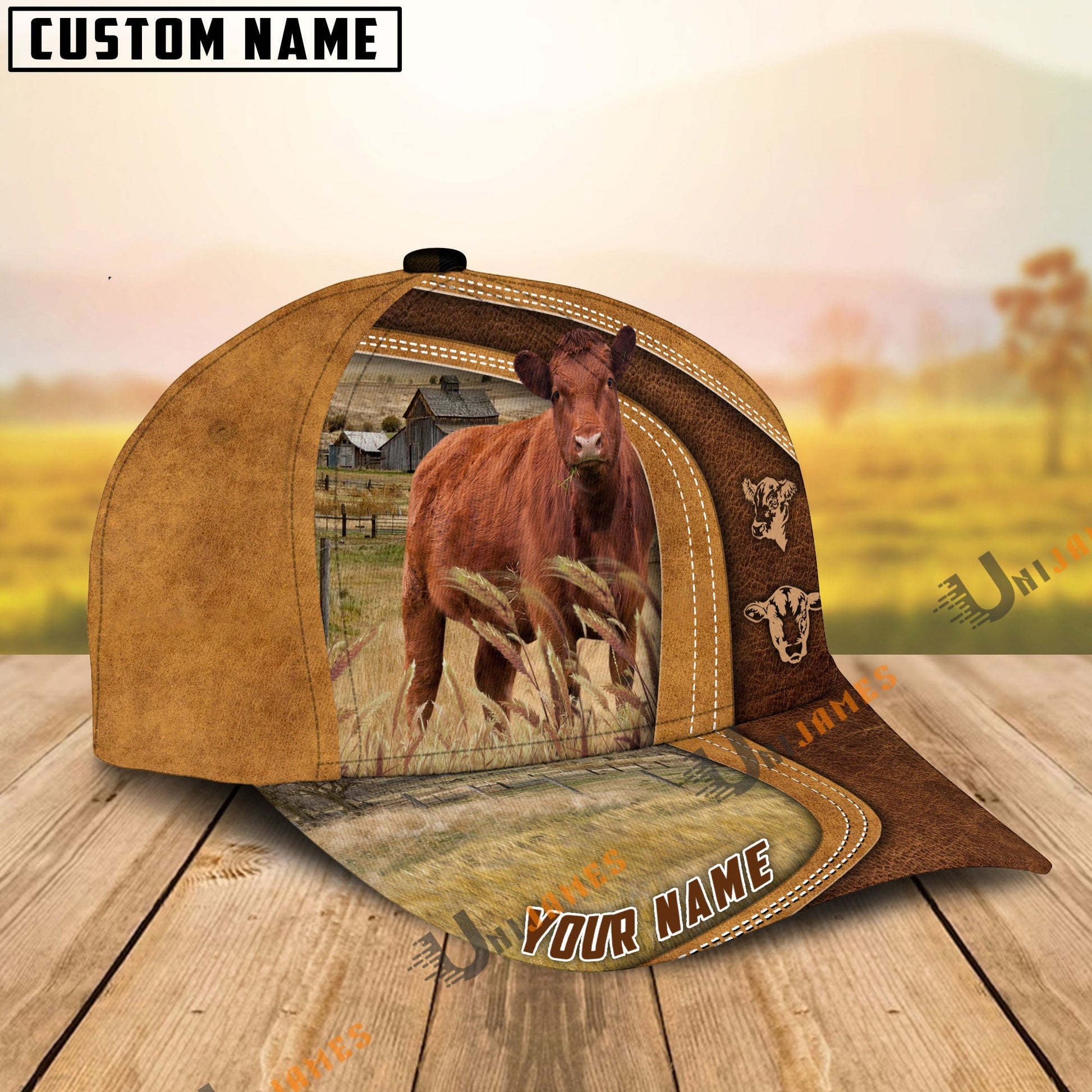 Uni Red Angus Ranch Lift Leather Pattern Customized Name Cap