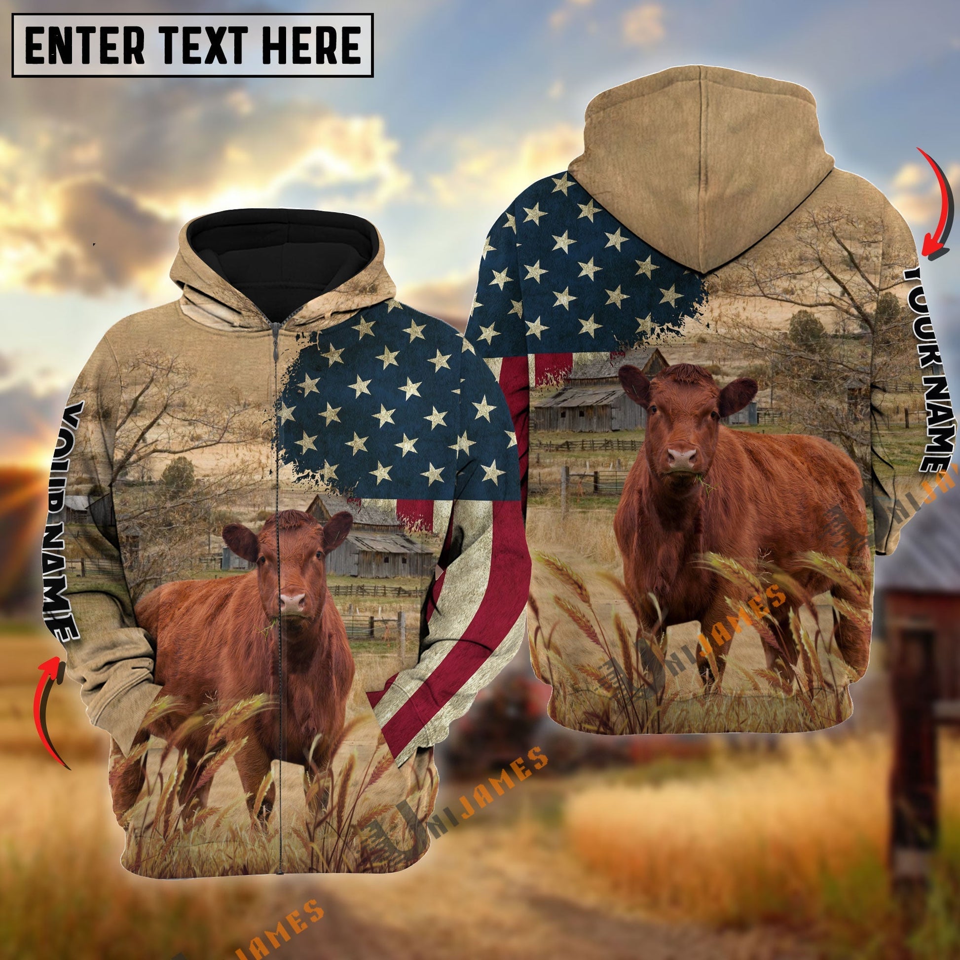 Uni Red Angus US Flag Customized Name 3D Hoodie
