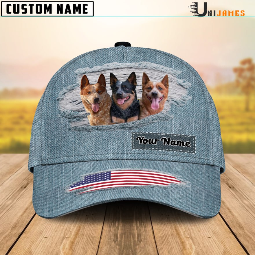 Uni Red & Blue Heeler Jeans Pattern Customized Name Cap