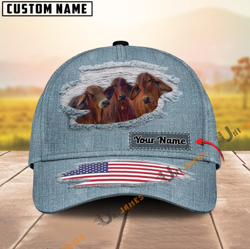 Uni Red Brahman Jeans Pattern Customized Name Cap