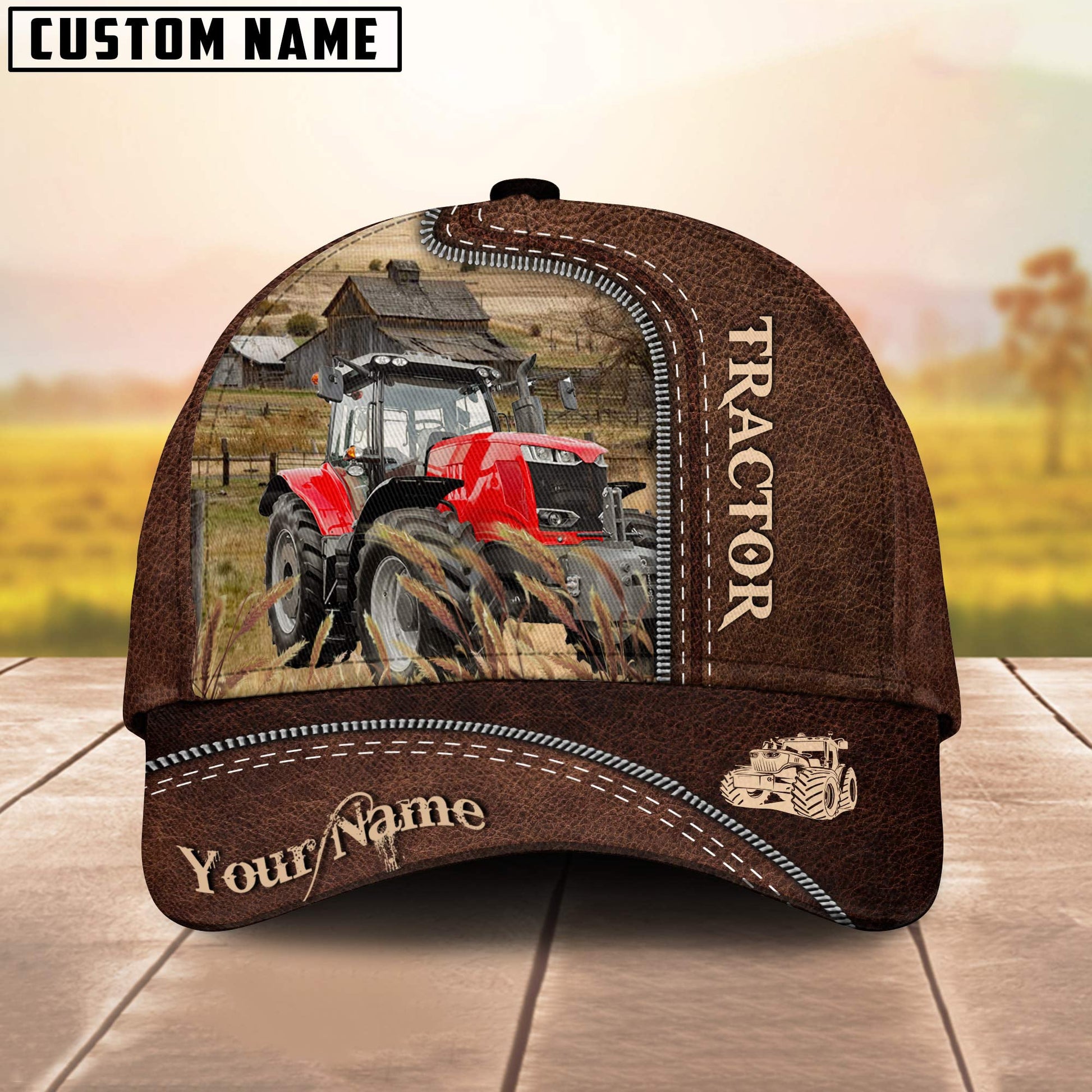 Uni Red Tractor Customized Name Leather Pattern Cap