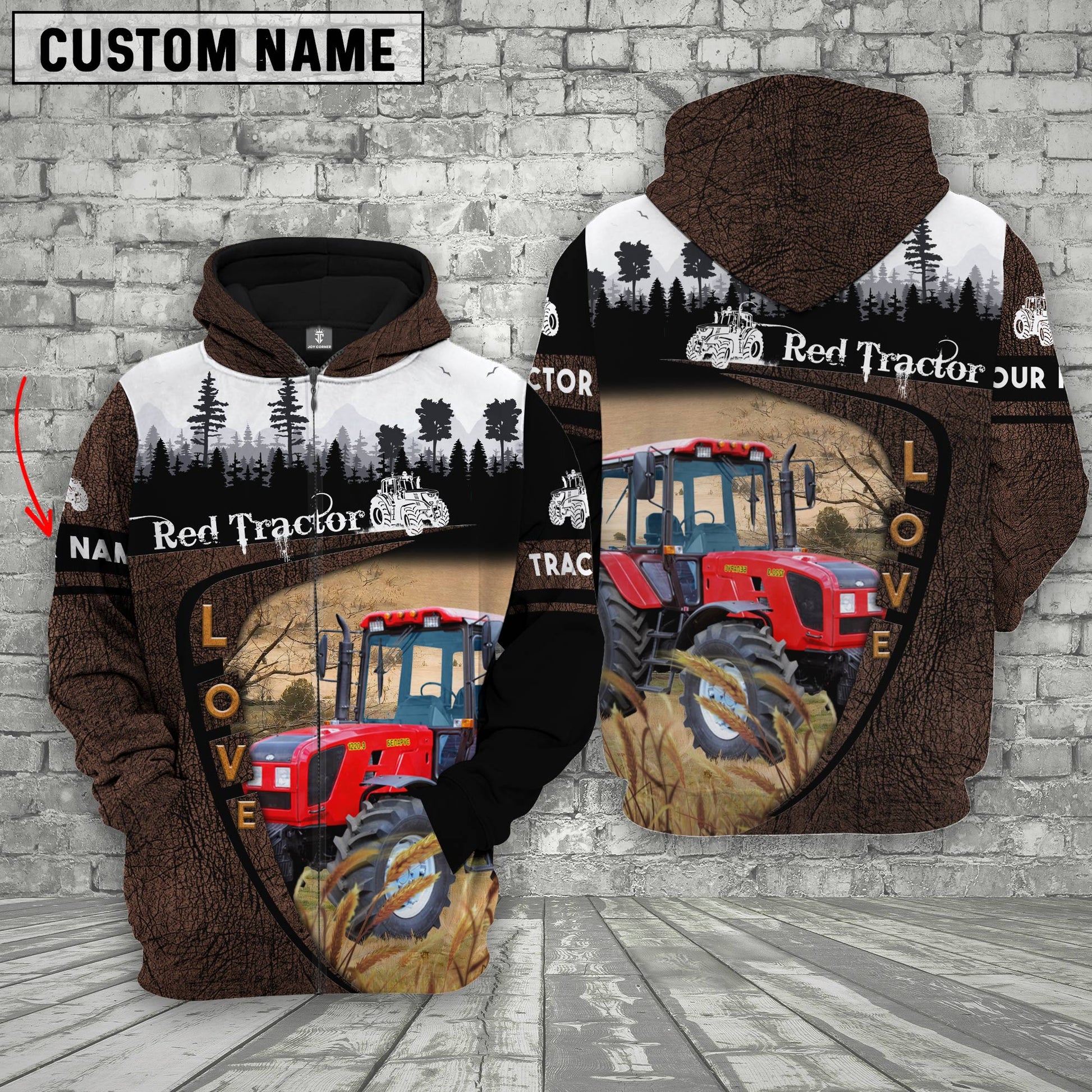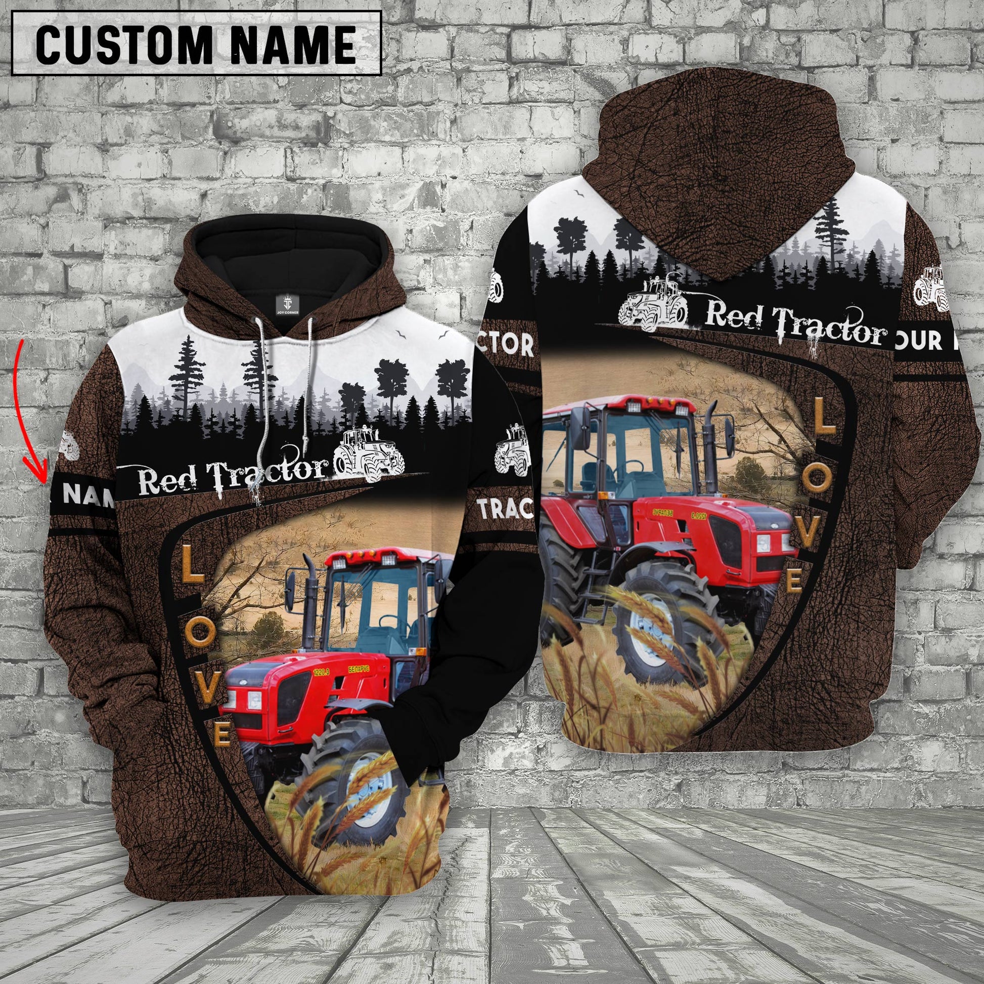Uni Red Tractor On Farms Custom Name Printed 3D Wooden Forest Hoodie