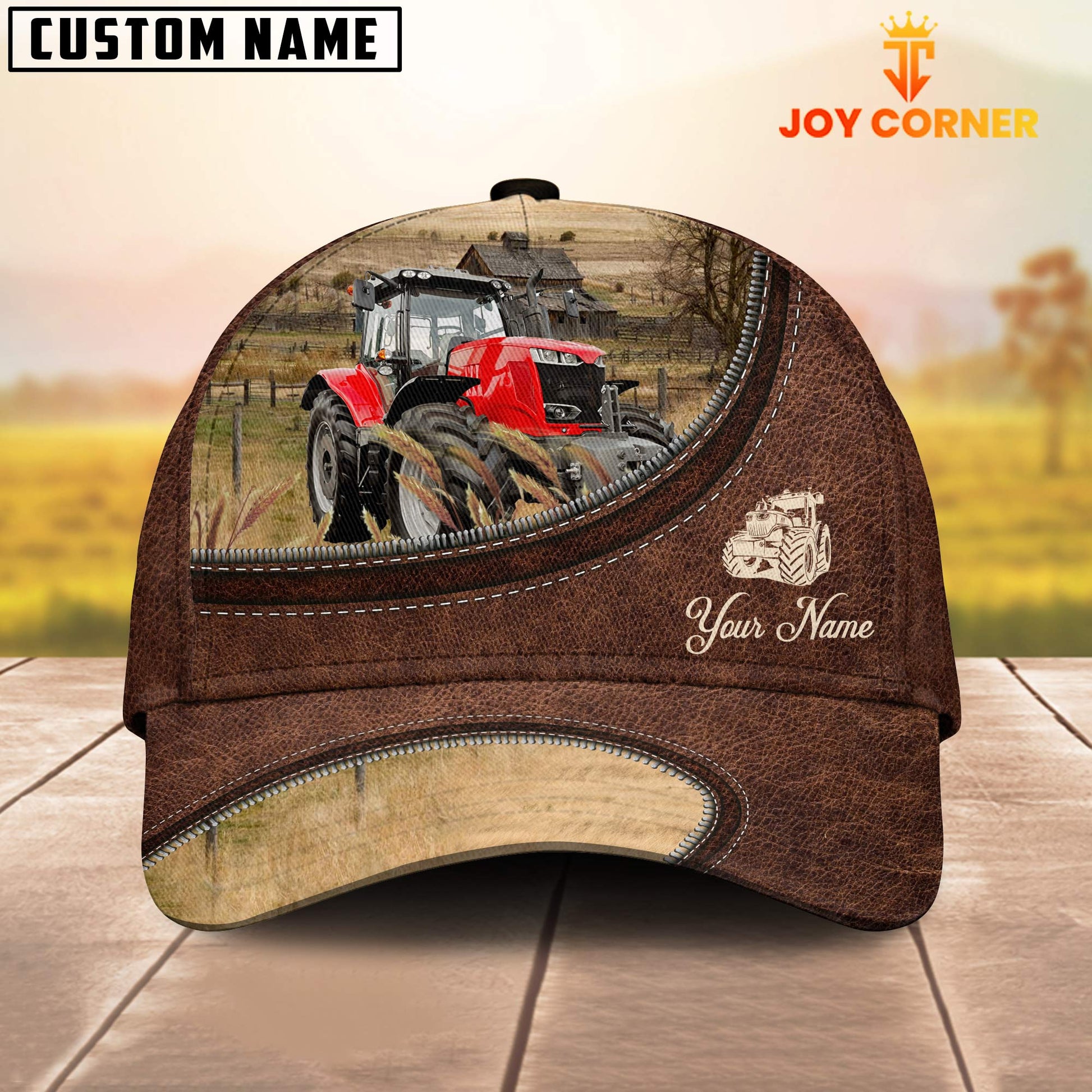 Uni Red Tractor On The Farm Customized Name Leather Pattern Cap