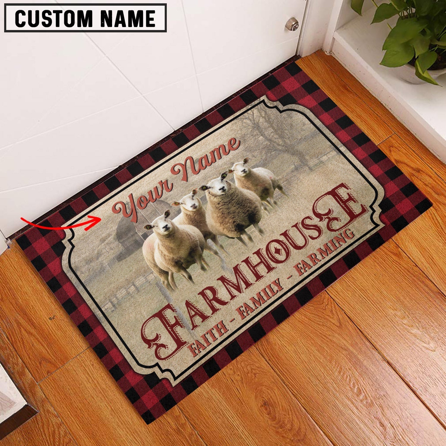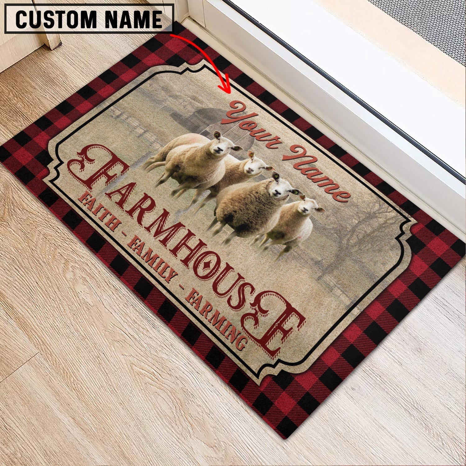 Uni Sheep Faith Family Farming Custom Name Doormat