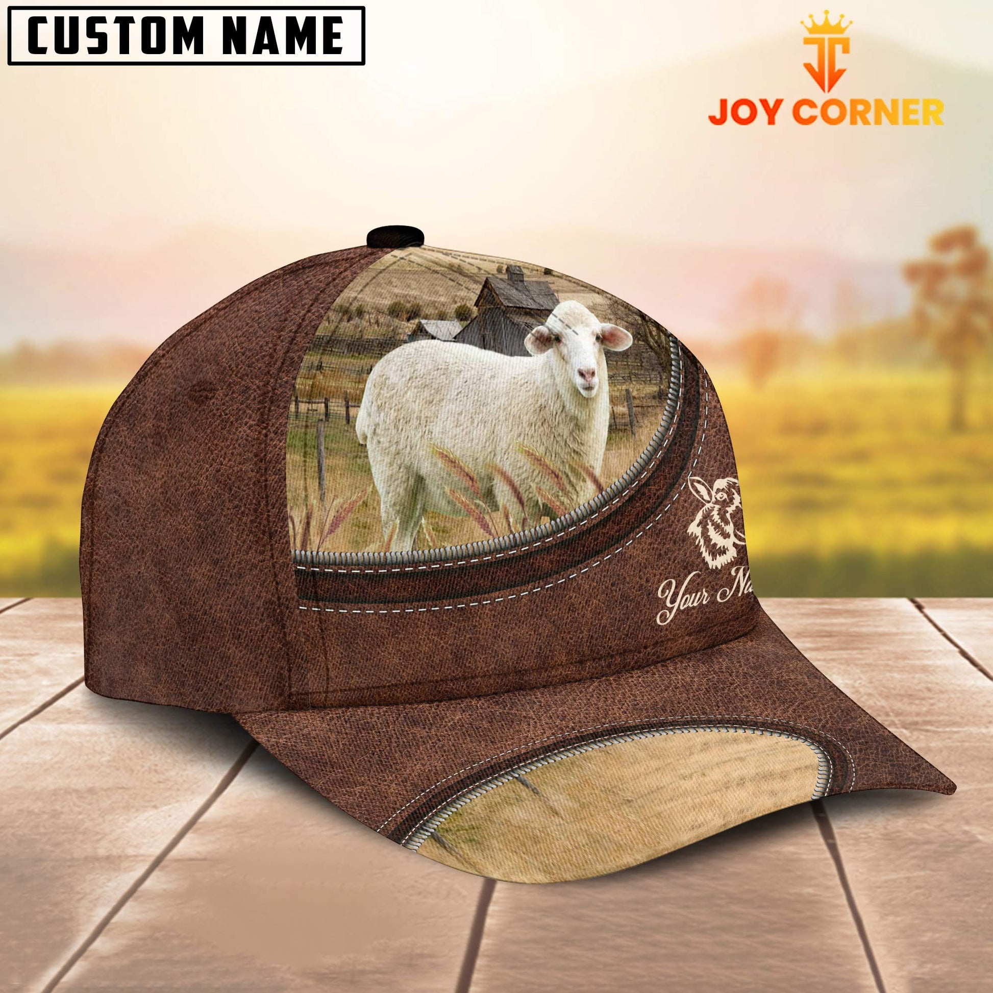 Uni Sheep On The Farm Customized Name Leather Pattern Cap