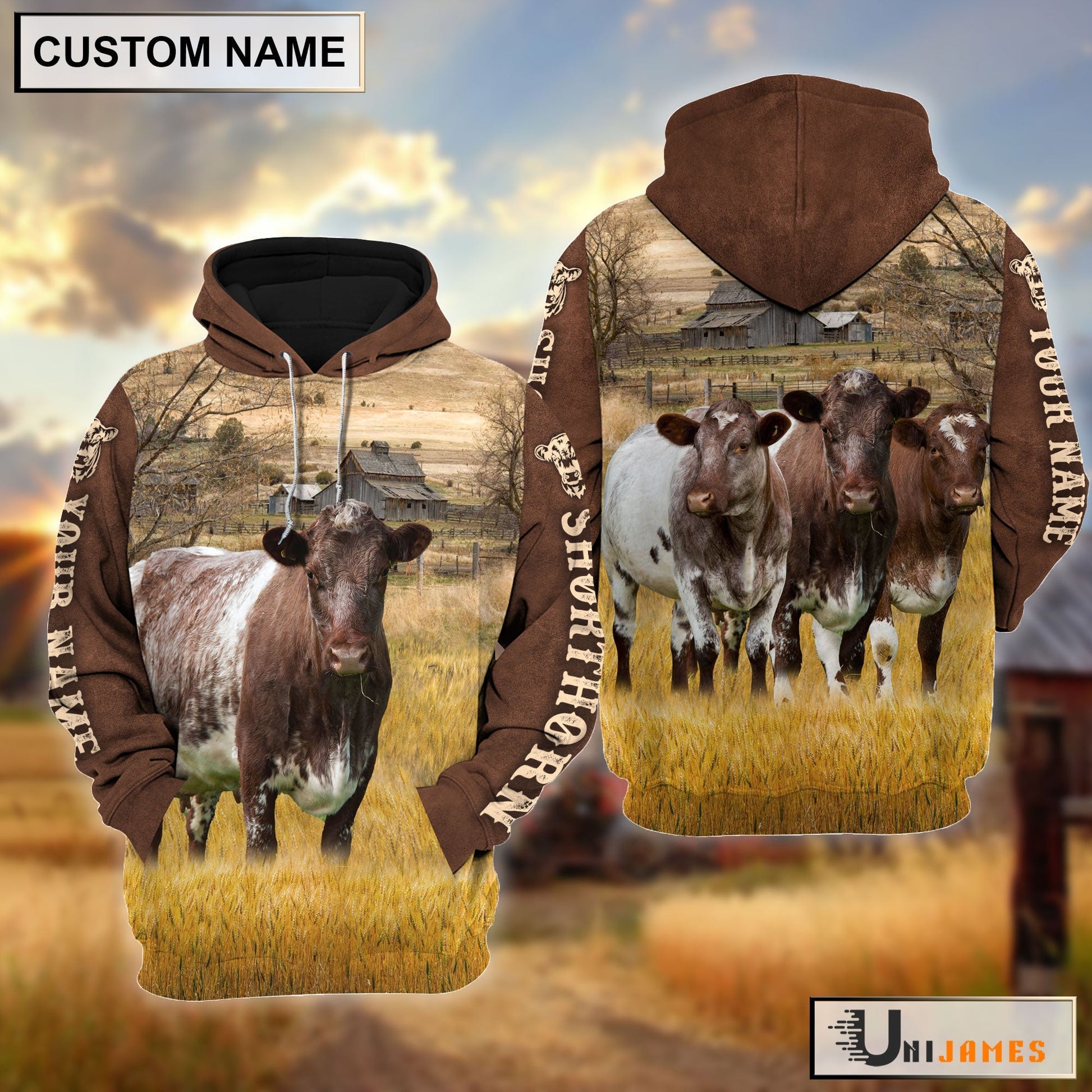 Uni Shorthorn Brown Sleeve Personalized Hoodie