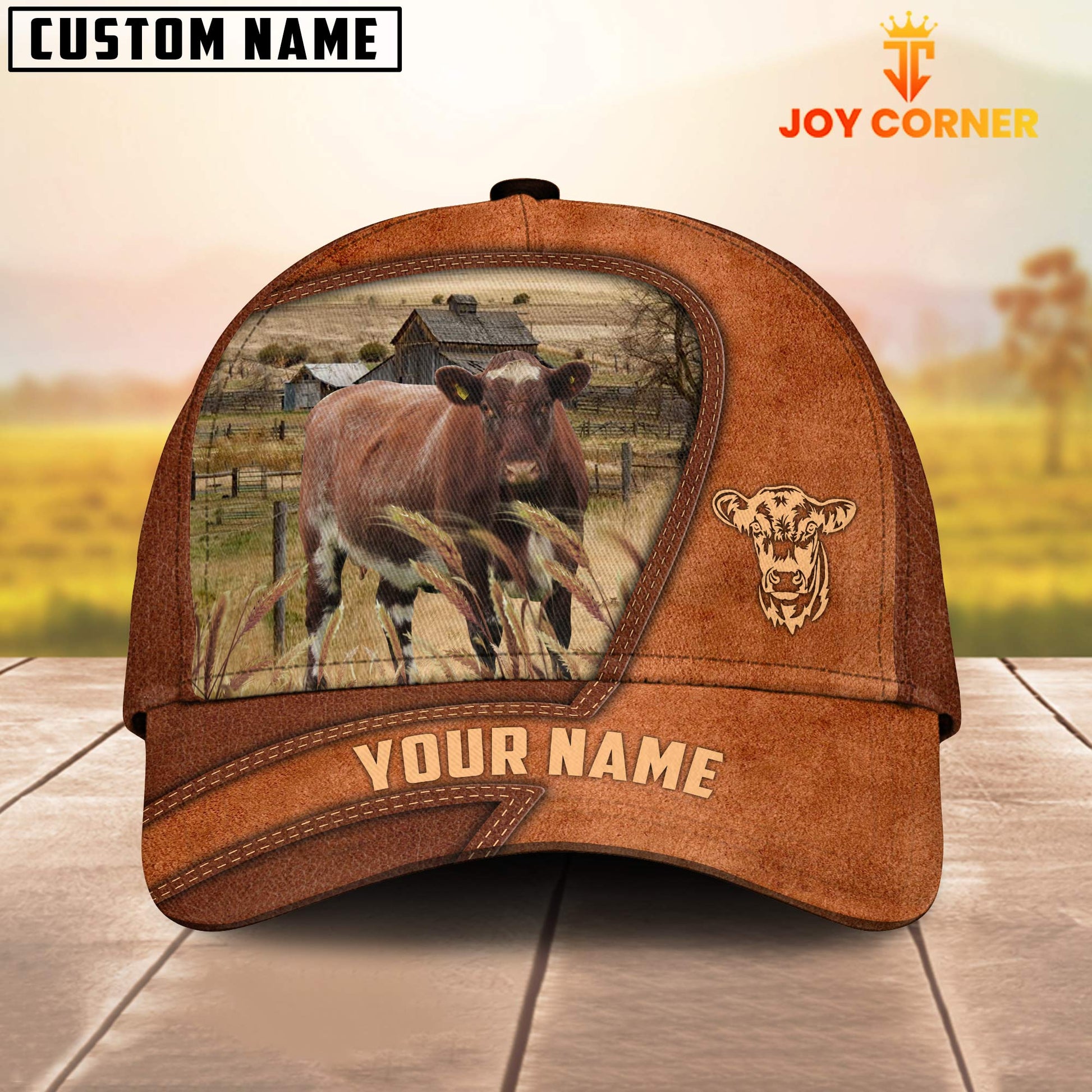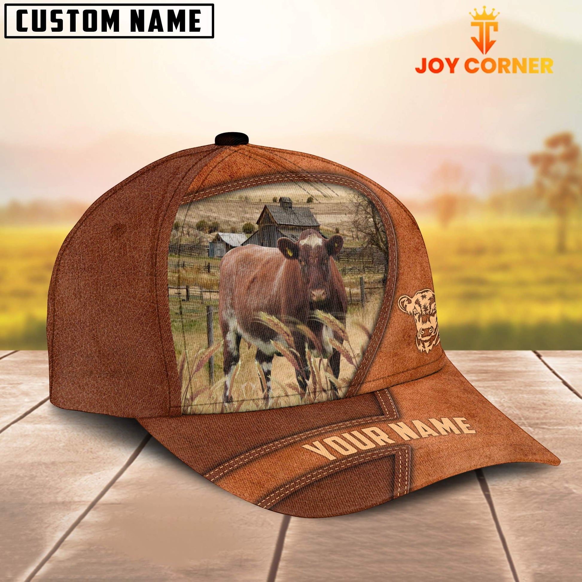 Uni Shorthorn Customized Name Brown Leather Pattern Cap