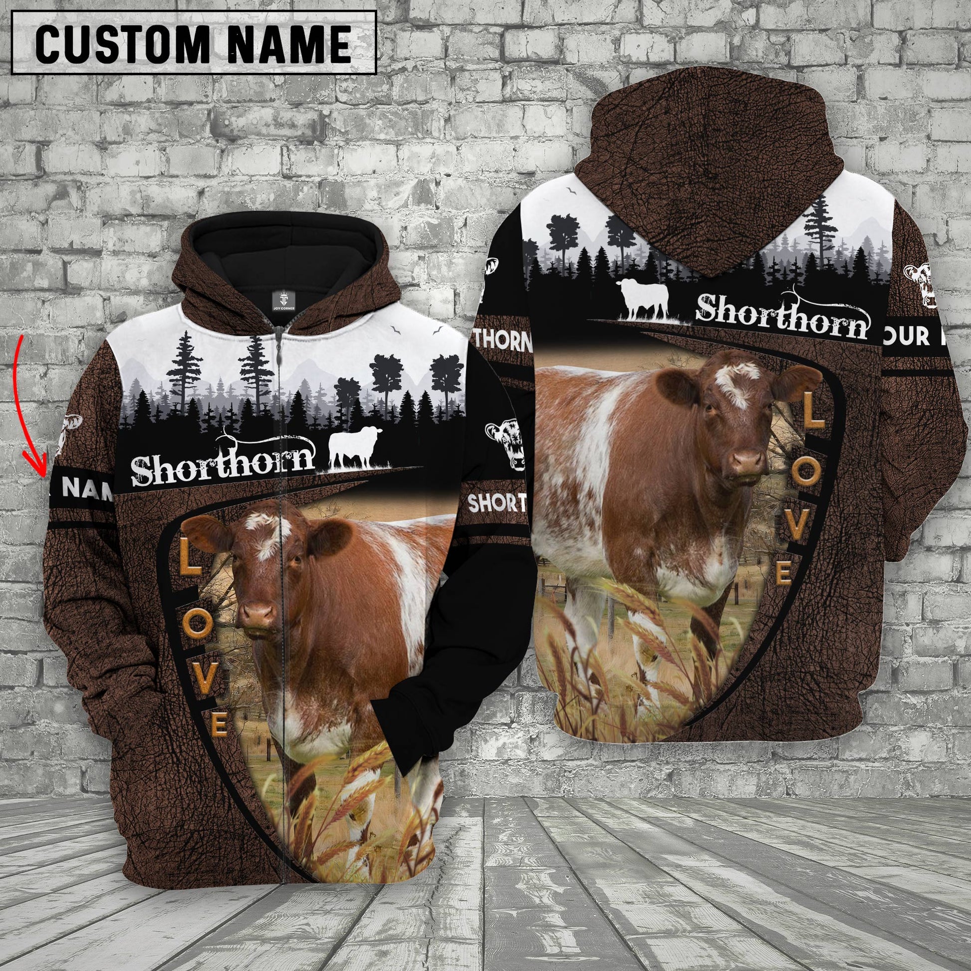 Uni Shorthorn On Farms Custom Name Printed 3D Wooden Forest Hoodie