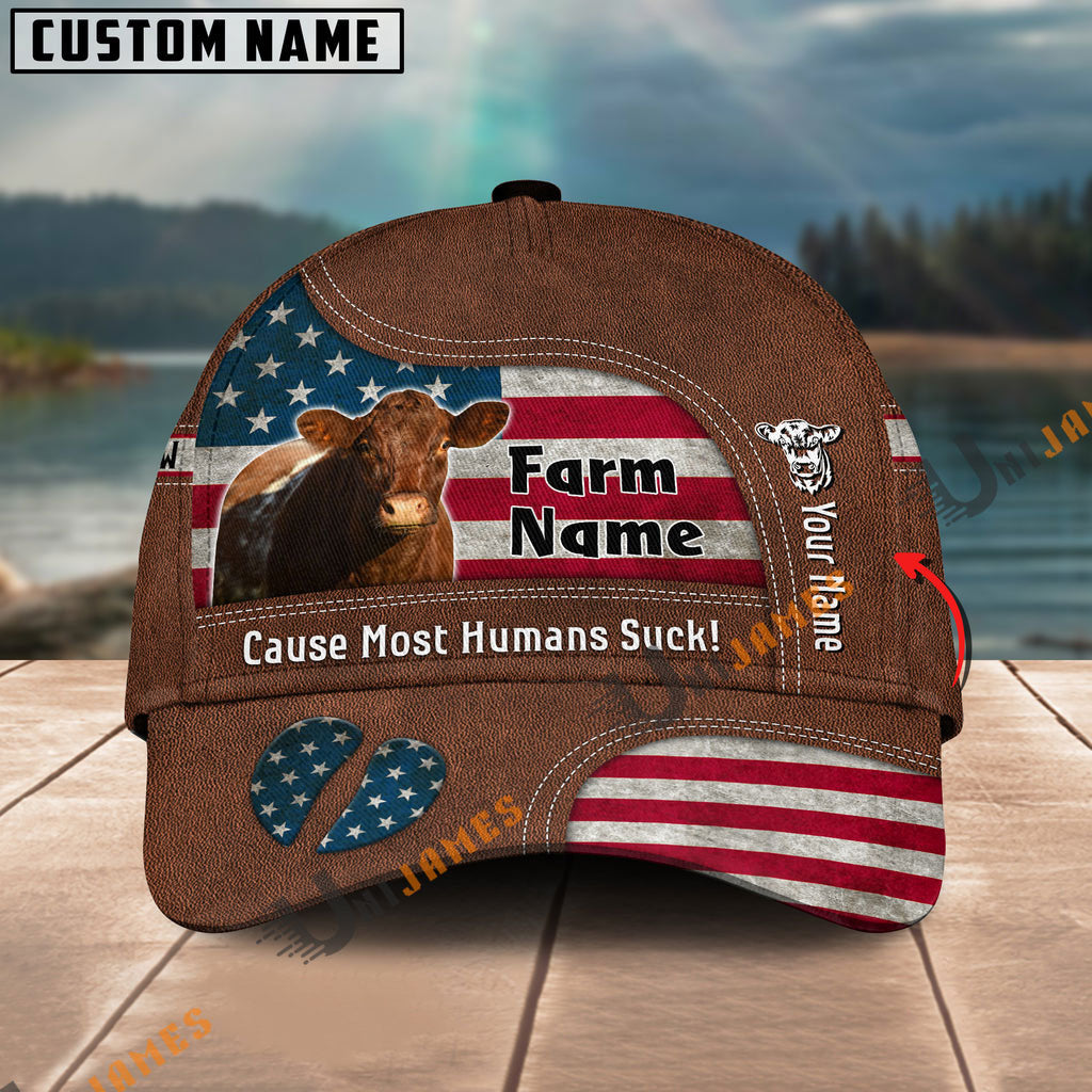 Uni Shorthorn US Flag Customized Name And Farm Name Cap