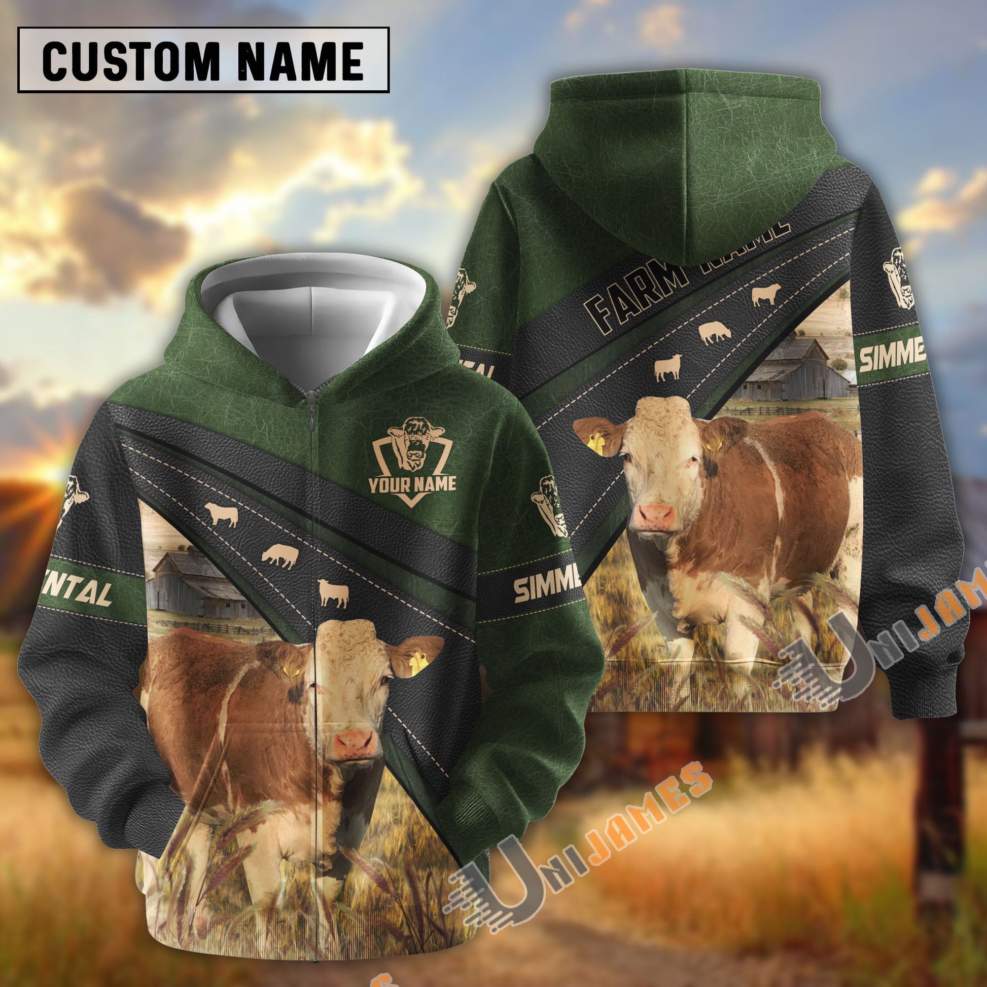 Uni Simmental Black Moss Leather Pattern Personalized Name and Farm Name Color Mixed 3D Hoodie