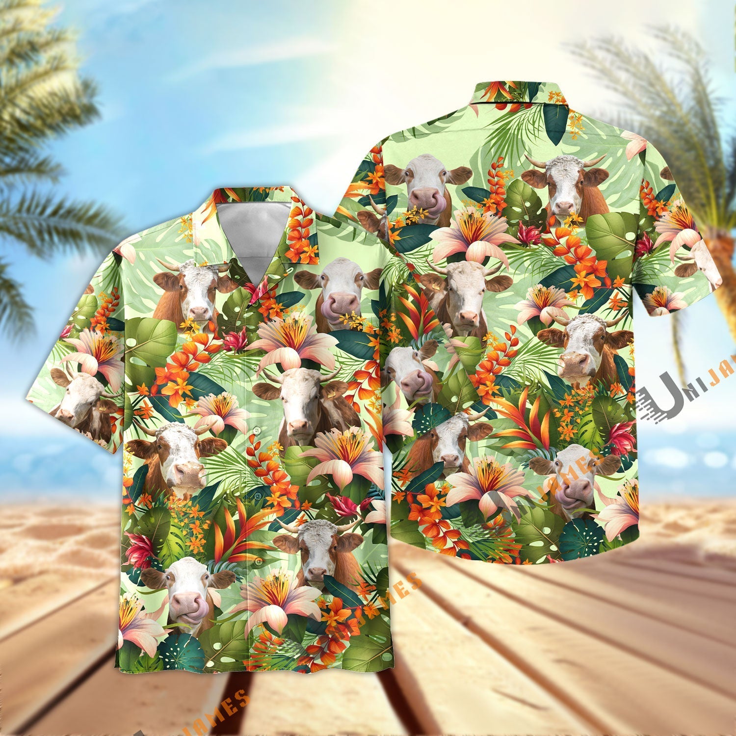 Uni Simmental Cool Summer Mint Pattern Hawaiian Shirt
