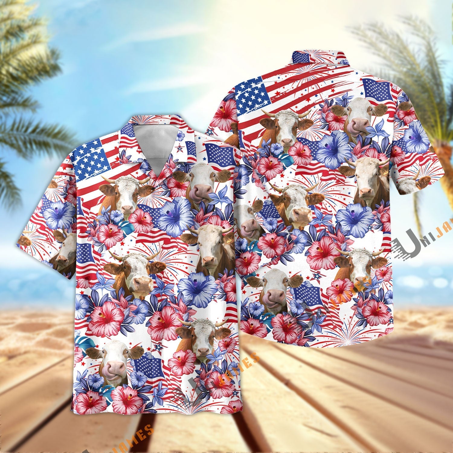 Uni Simmental Happy America 2 Hawaiian Shirt