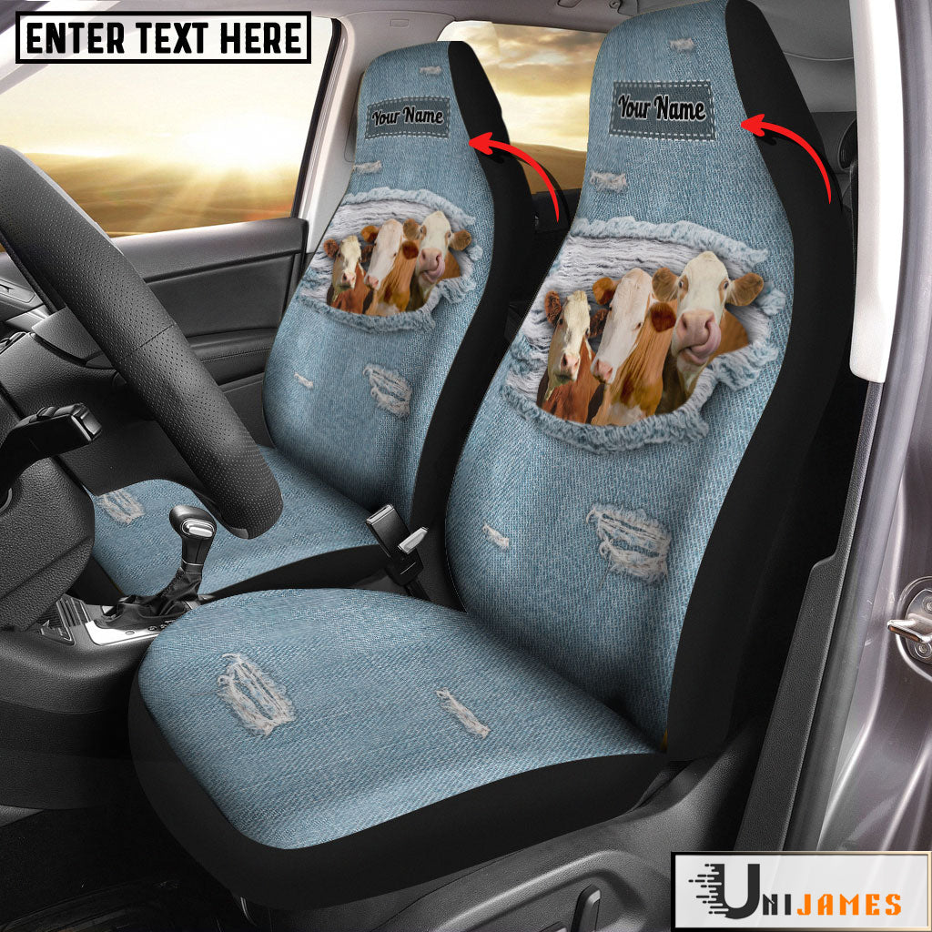 Uni Simmental Personalized Name Leather Pattern Car Seat Covers Universal Fit (2Pcs)
